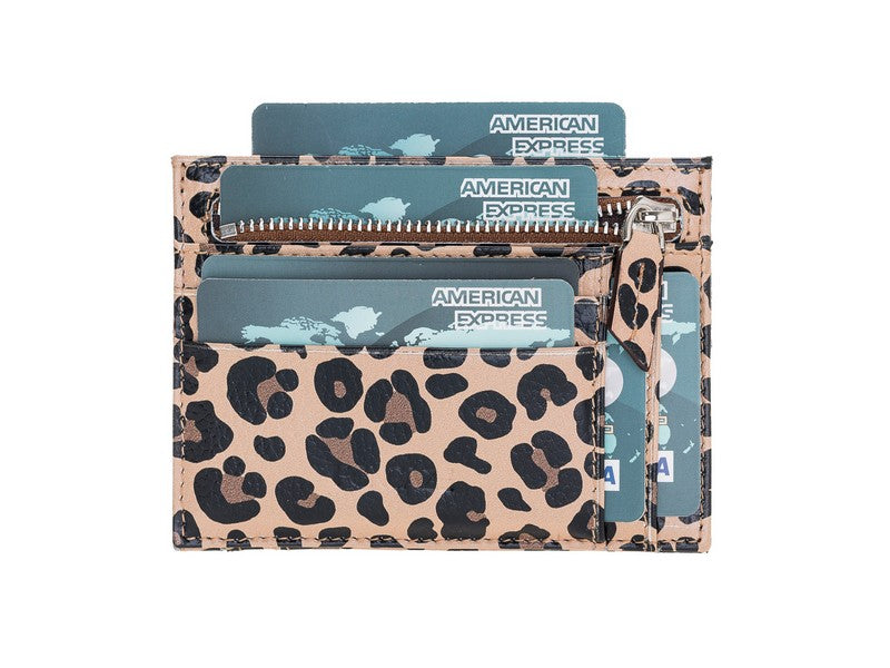 Hakiki Deri, El Yapımı Kartlık, Bozuk Para Bölümü, 6 Adet Kart Bölmesi, Leopar Baskılı