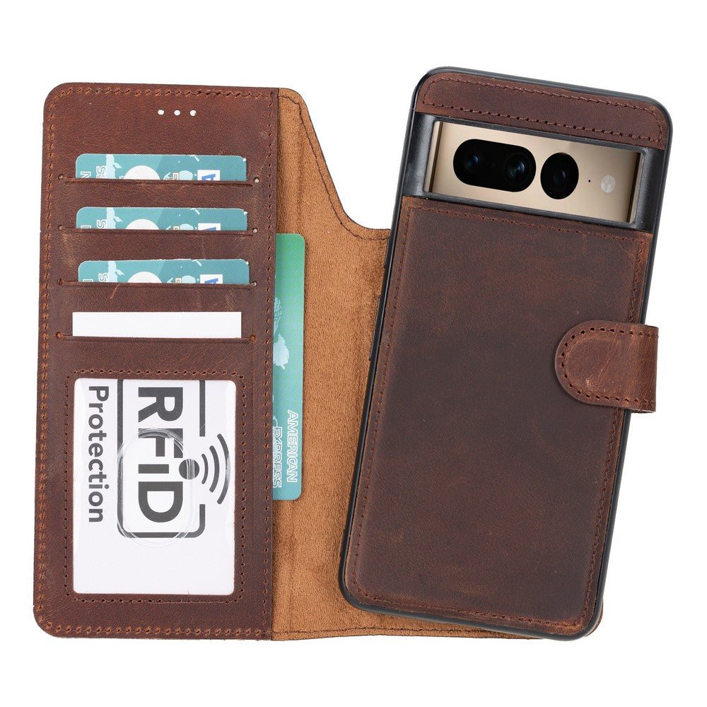 Google Pixel 8 Pro uyumlu, Hakiki Deri, El Yapımı, Cüzdanlı Kılıf, Kahve