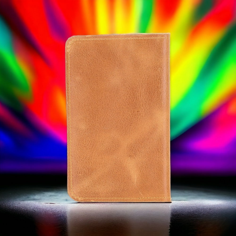 Deri Cüzdanlı Pasaport Kılıfı, 4 Adet Kart Bölmesi, Rustik Taba
