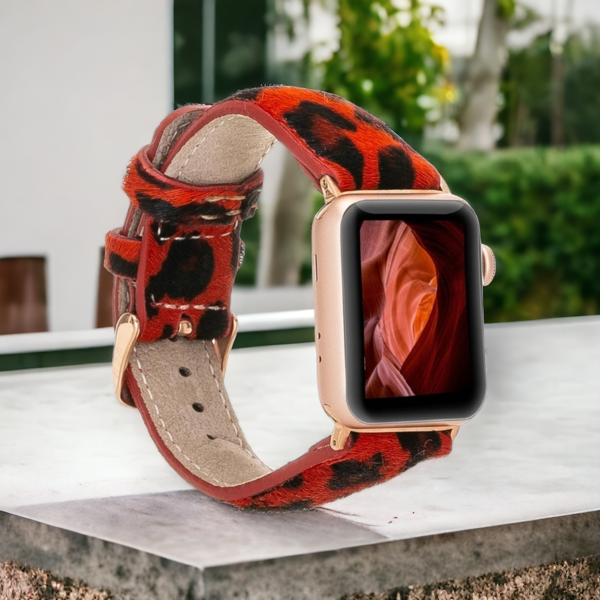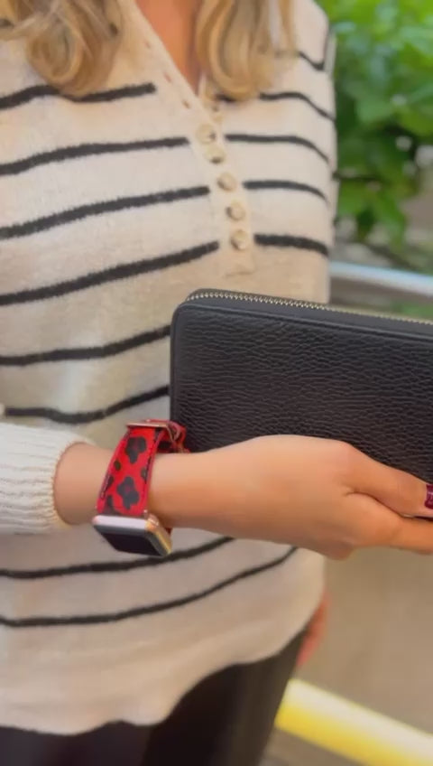 Leopar Baskılı Apple Watch Saat Kordonu + Çok Bölmeli Kadın Cüzdan Hediye Paketi