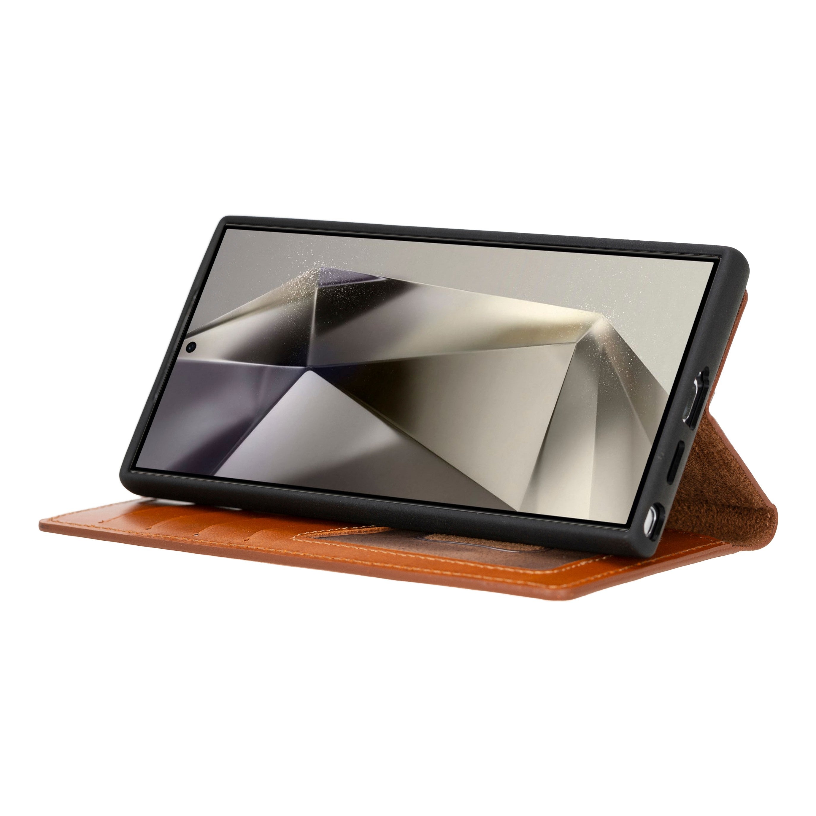 Samsung Galaxy S24 Ultra uyumlu, Hakiki Deri, El Yapımı, Cüzdanlı Kılıf, Gölgeli Taba