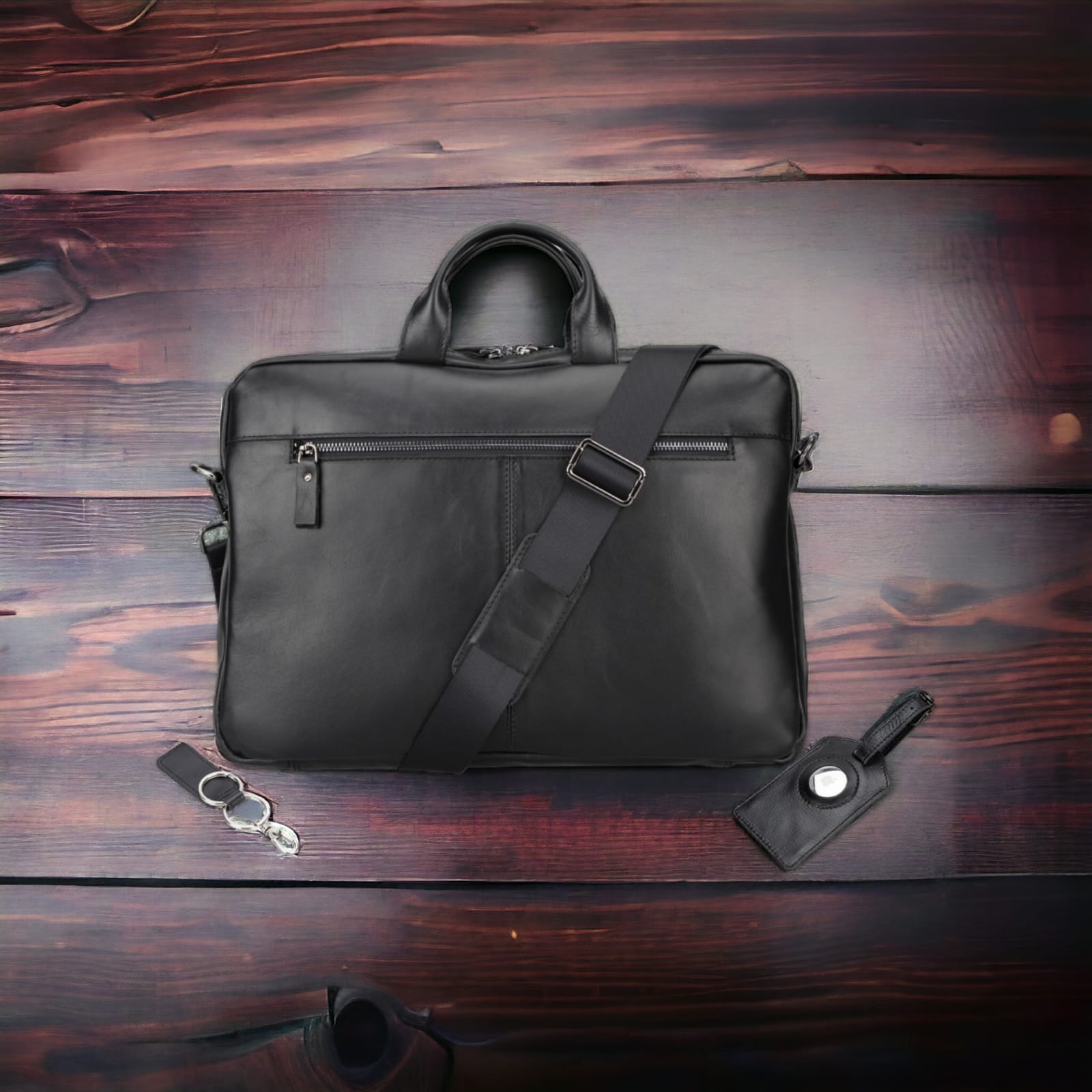 Siyah Rustik Deriden Çanta, Bagaj Etiketi ve Anahtarlık Paketi