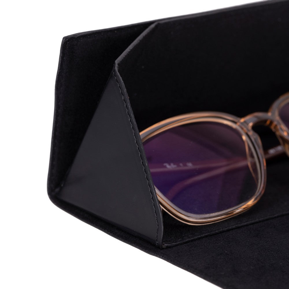 Smart Glass Hakiki Deri, El Yapımı Gözlük Kılıfı, H101 Mat Siyah