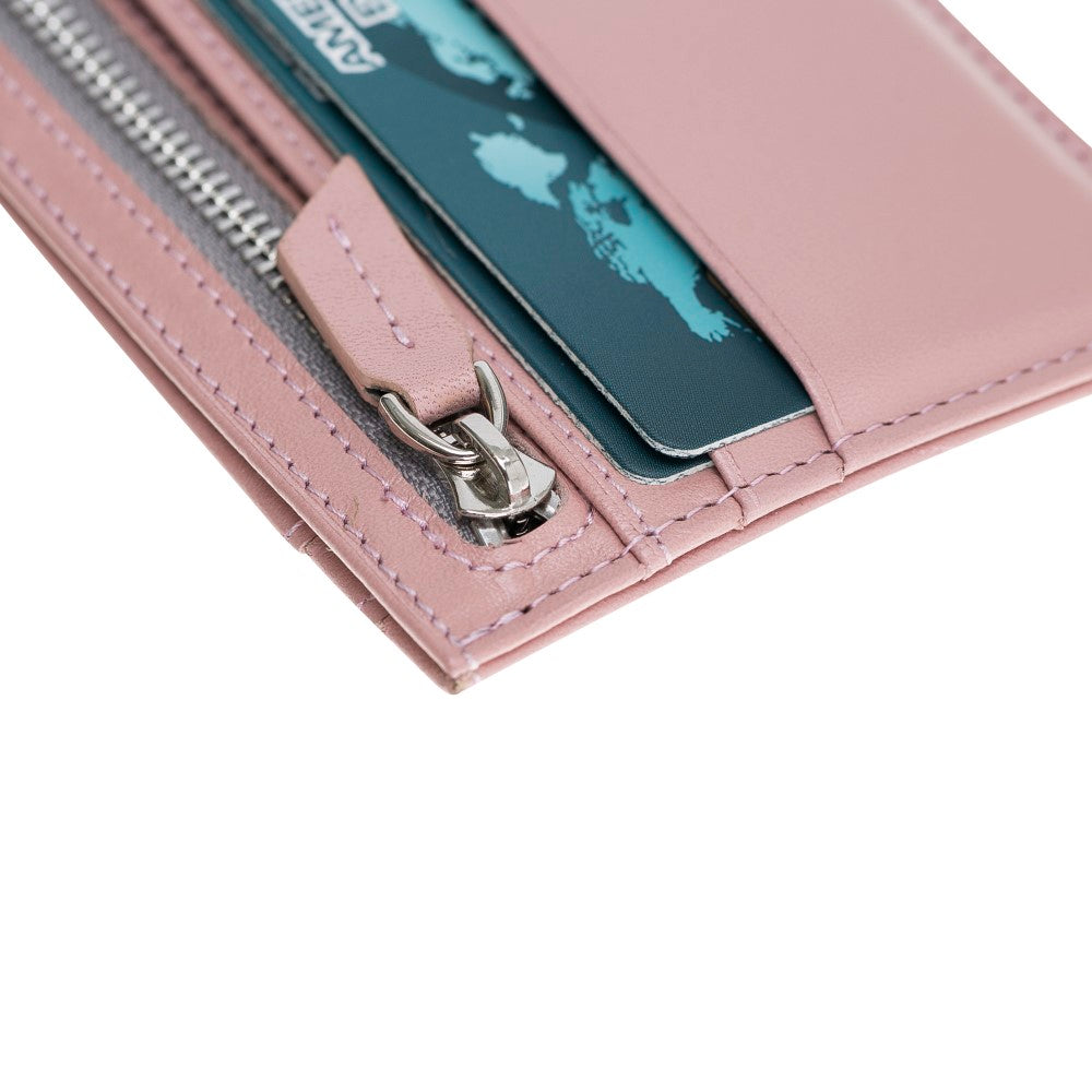Deri Kartlık, Bozuk Para Bölmeli, 6 Kart Tutar, Şeker Pembe