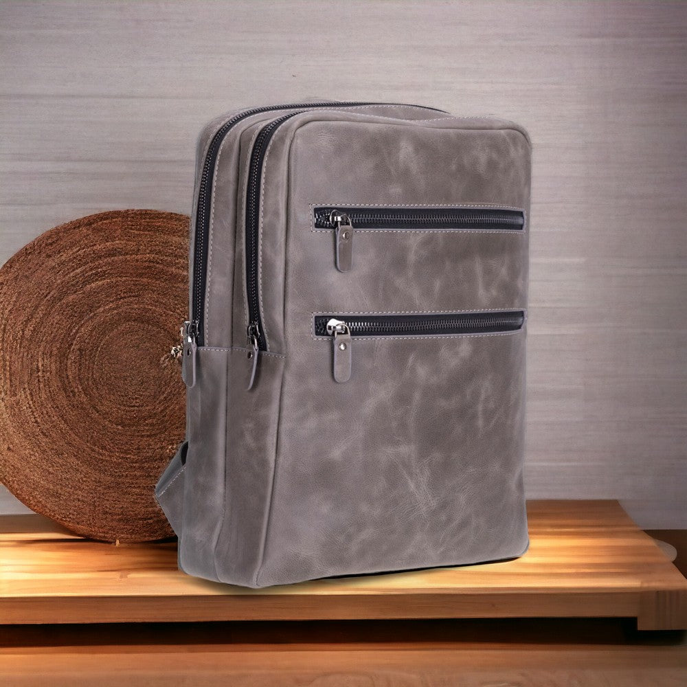 Hidden Castle Hakiki Deri, El Yapımı ,Sırt Çantası, Antik Gri