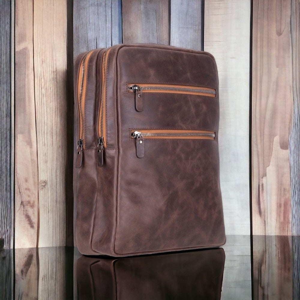 Hidden Castle Hakiki Deri, El Yapımı ,Sırt Çantası, Antik Kahverengi