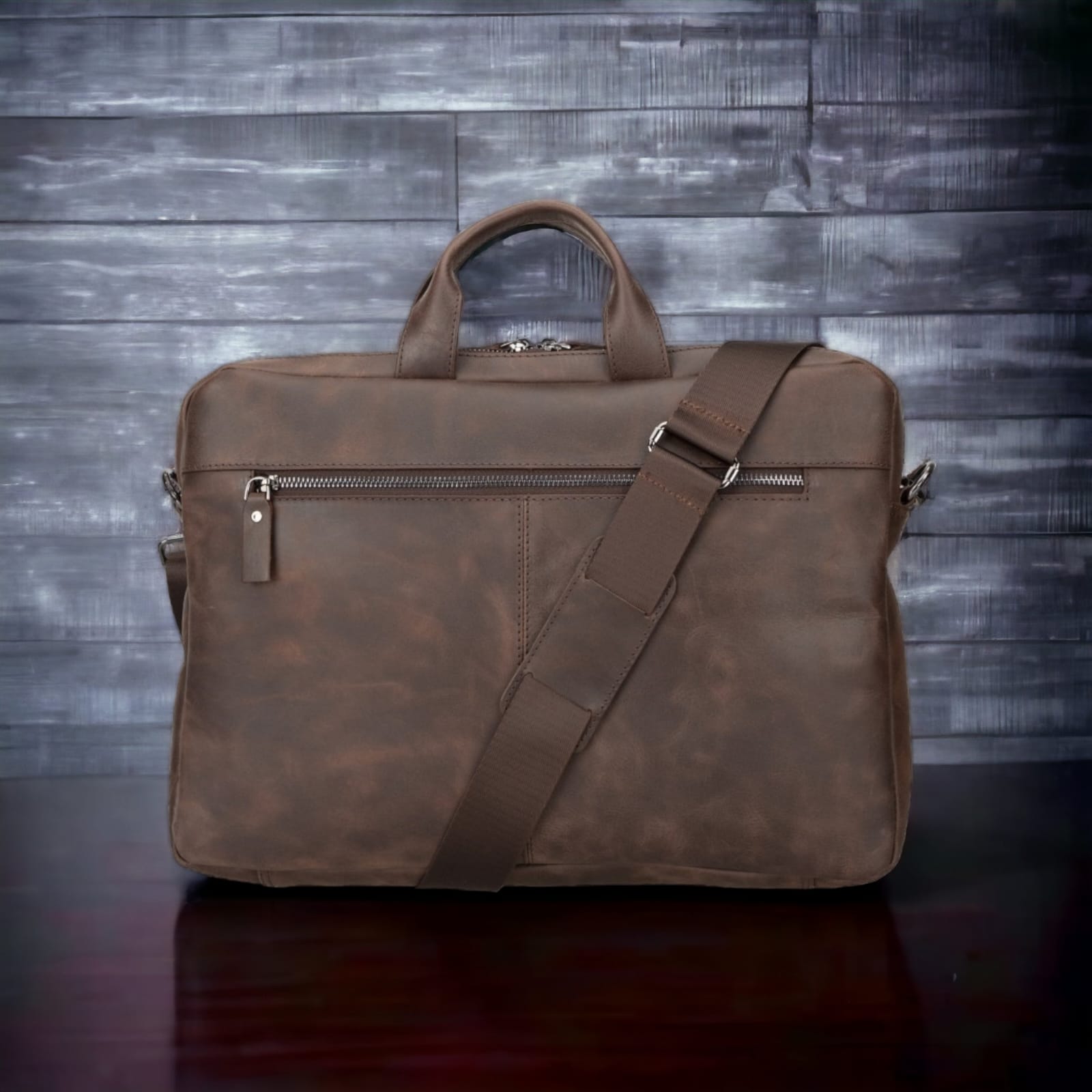 Thasos 15-16 inç MacBook ve PC uyumlu, Hakiki Deri, El Yapımı Çanta, Rustik Taba
