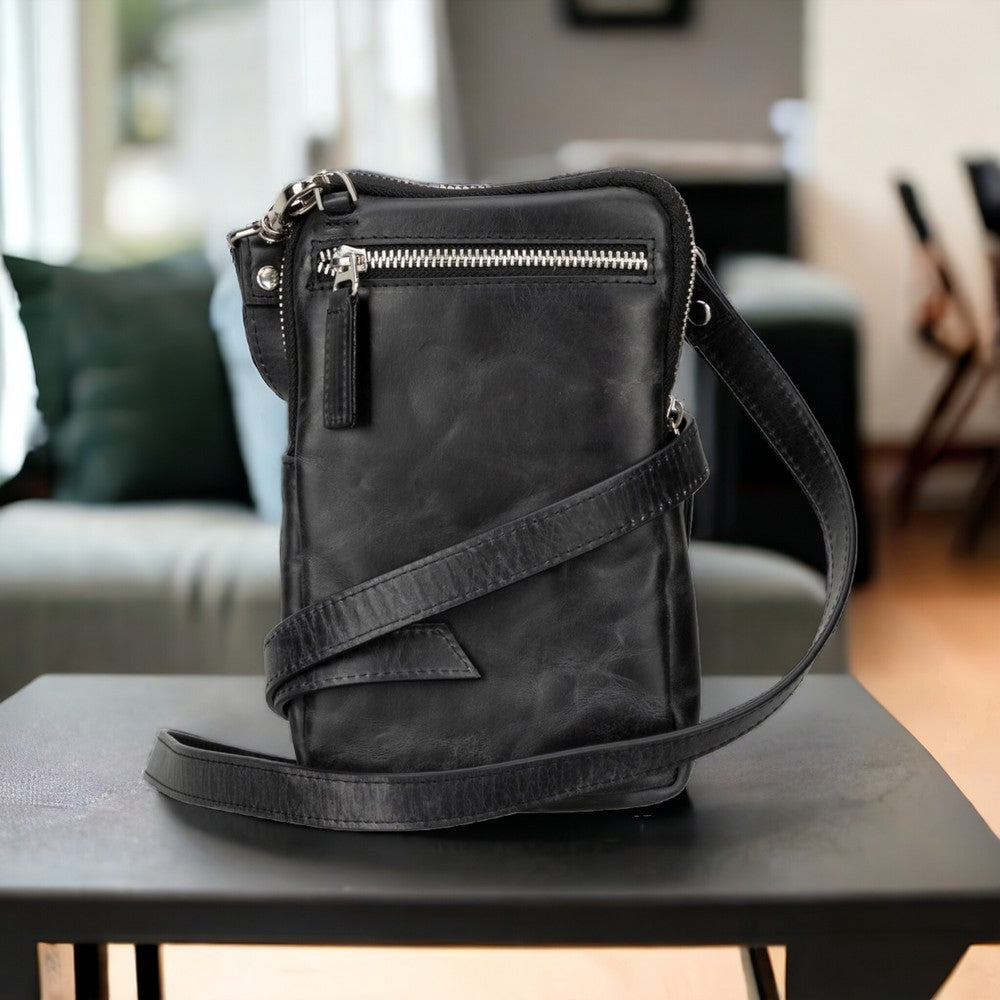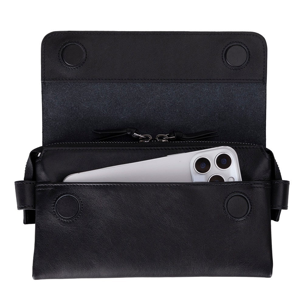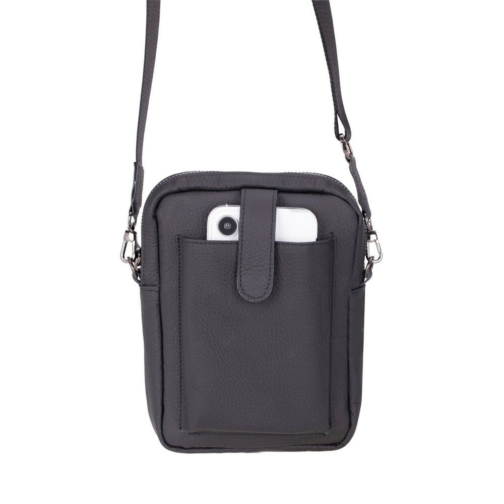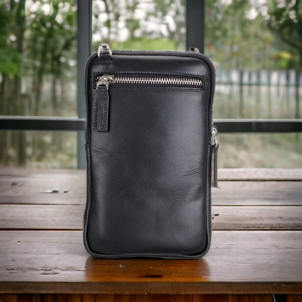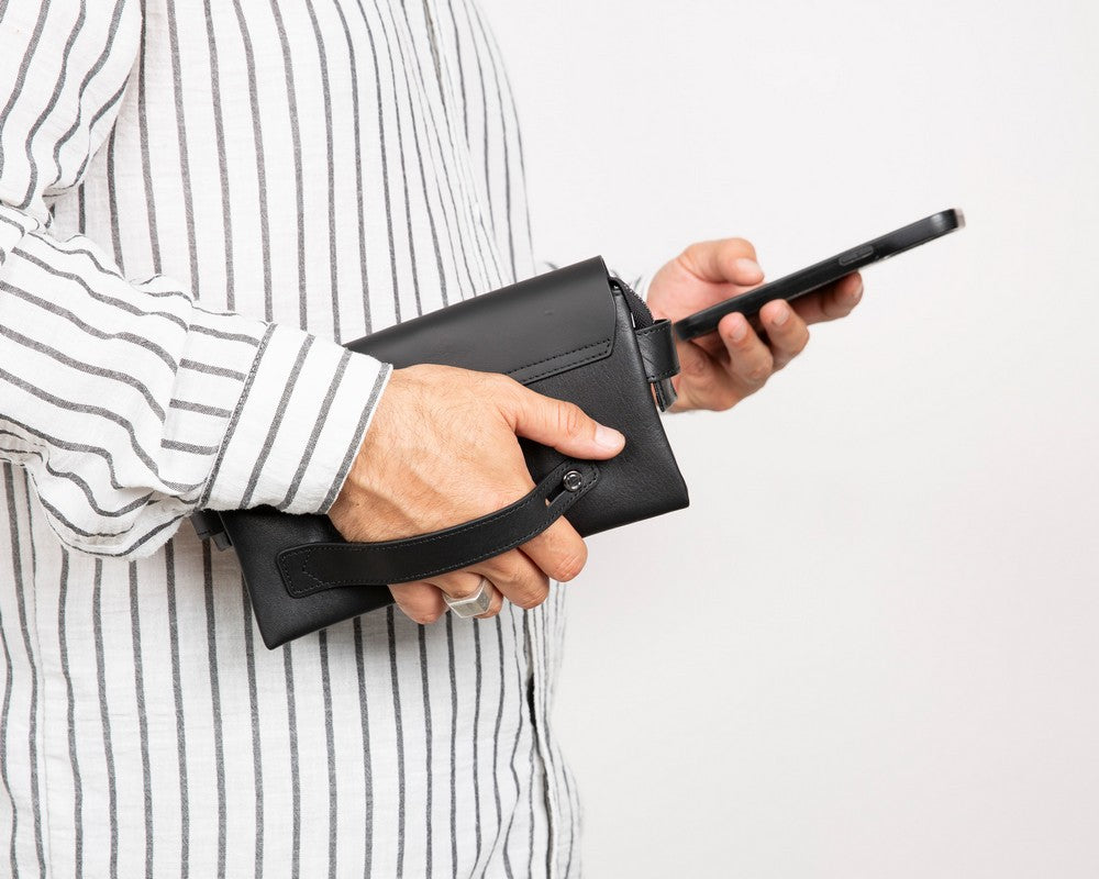 Prestige Hakiki Deri, El Yapımı, Telefon Bölmeli, Erkek El Çantası, Kömür Siyah