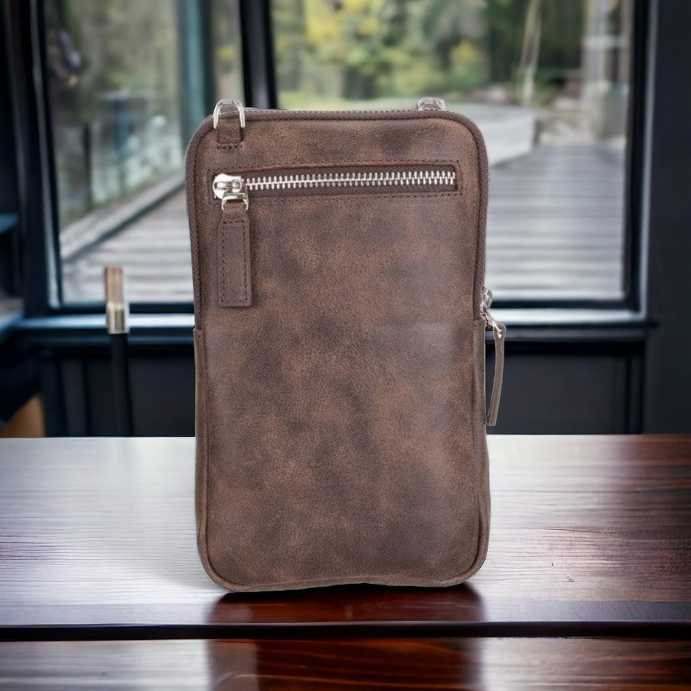 Prestige Hakiki Deri, El Yapımı, Telefon Bölmeli, Erkek El Çantası, Antik Kahve