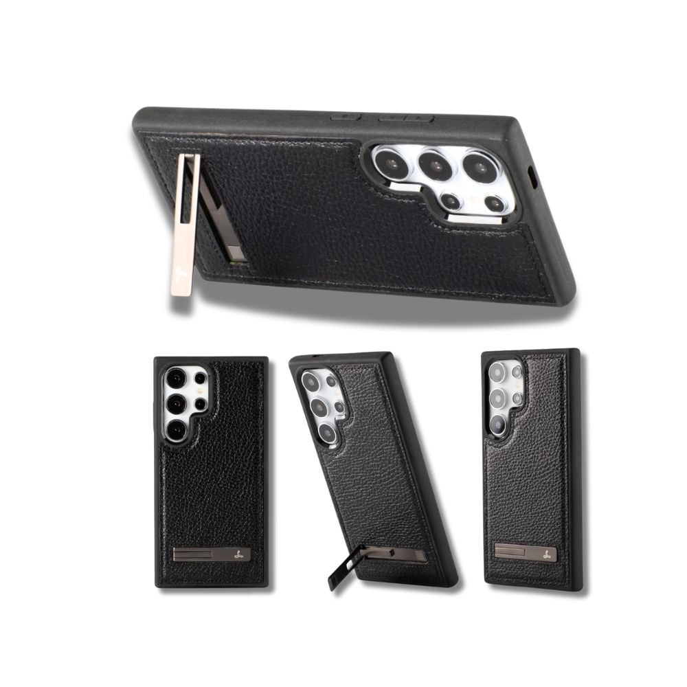Samsung Galaxy S24 Ultra Uyumlu, Hakiki Deri, El Yapımı Standlı Kılıf