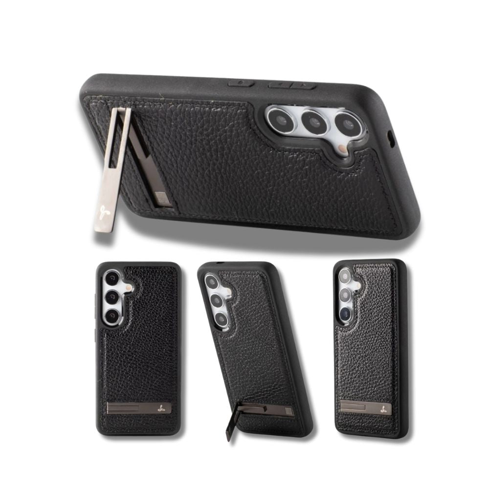 Samsung Galaxy S24 Plus Uyumlu, Hakiki Deri, El Yapımı Standlı Kılıf