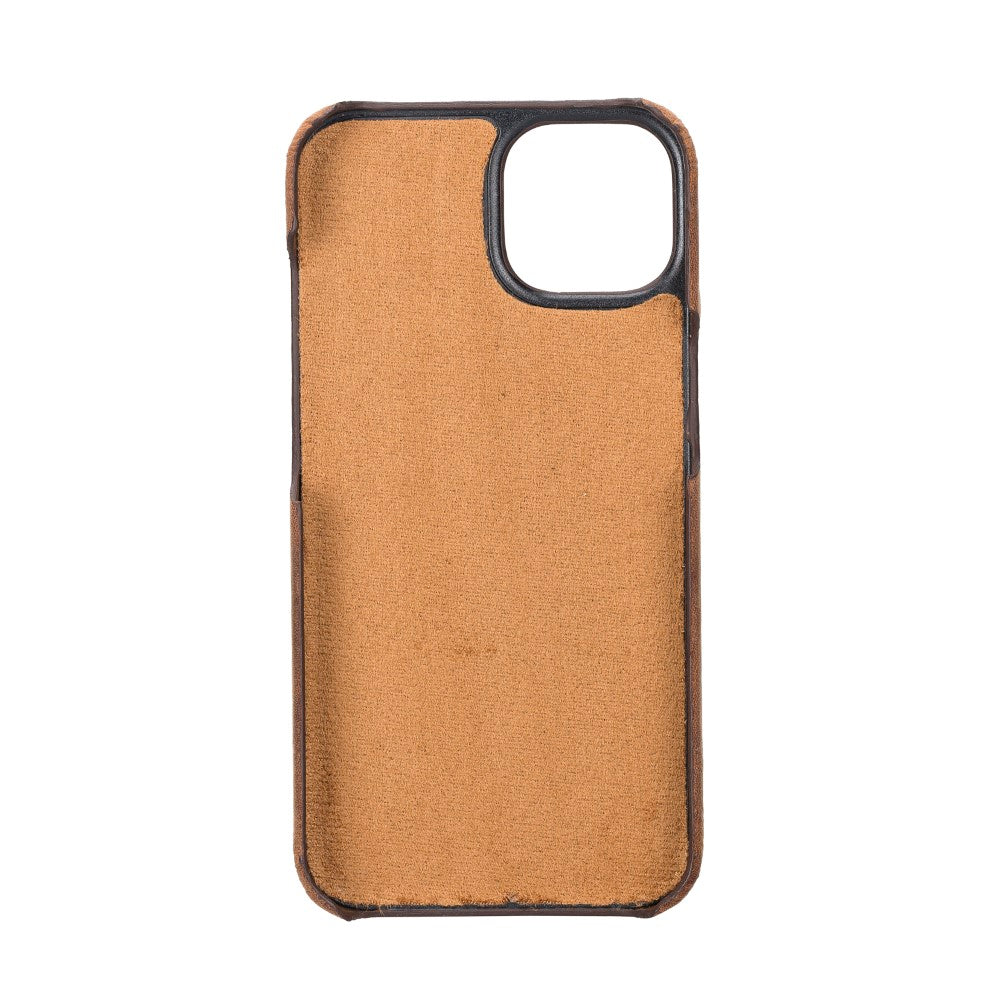 Apple iPhone 14 Plus Uyumlu, Hakiki Deri, El Yapımı, Arka Kapak, Antik Kahve
