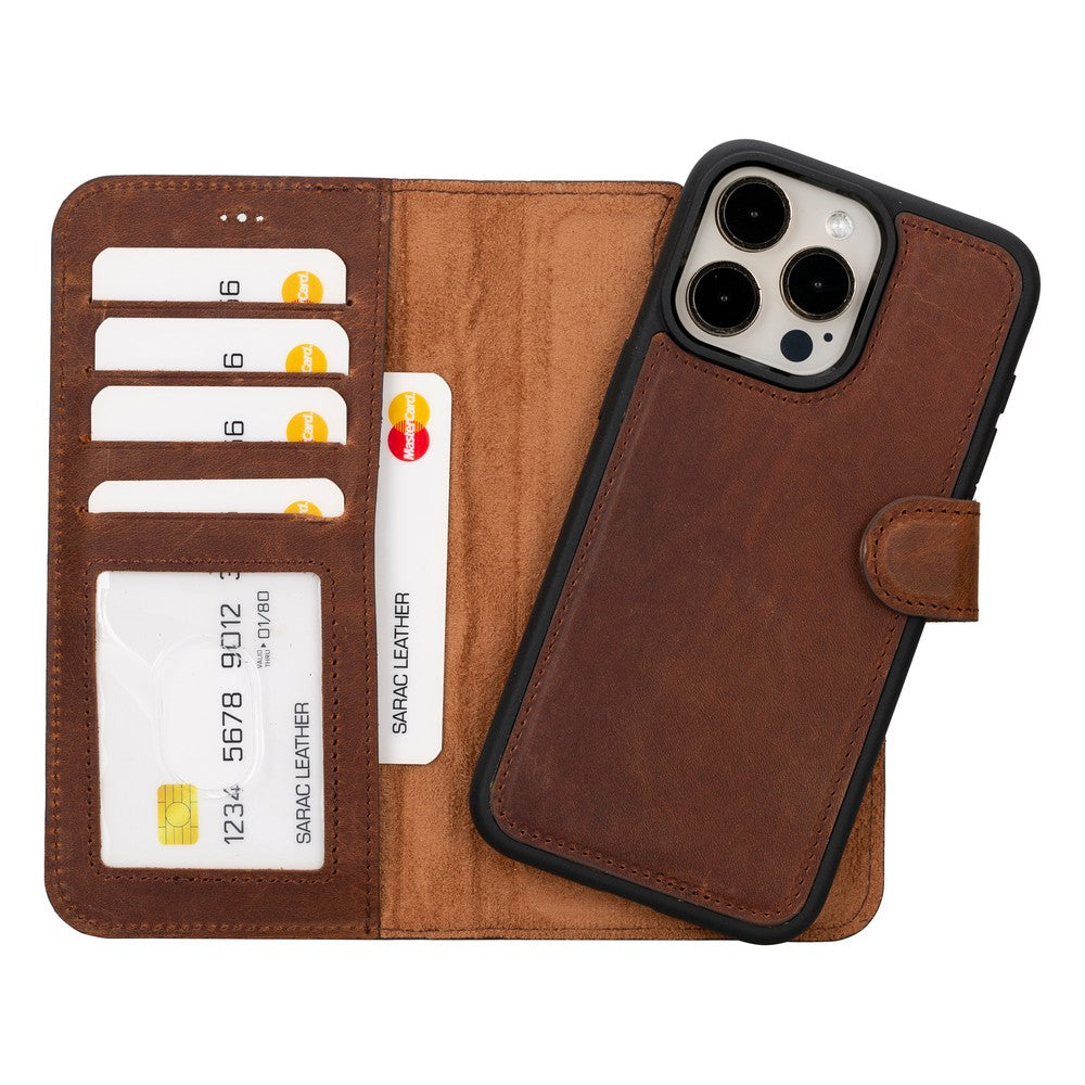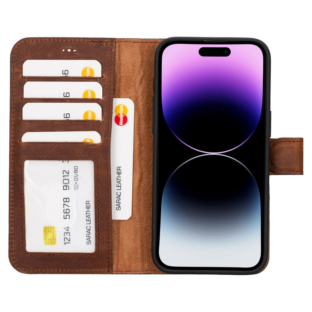 Apple iPhone 15 Pro uyumlu, Hakiki Deri, El Yapımı, Cüzdanlı Kılıf, G2