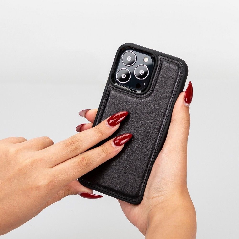 Bouletta Apple iPhone 15 Pro Max Uyumlu Deri Arka Kapak RST1 Siyah