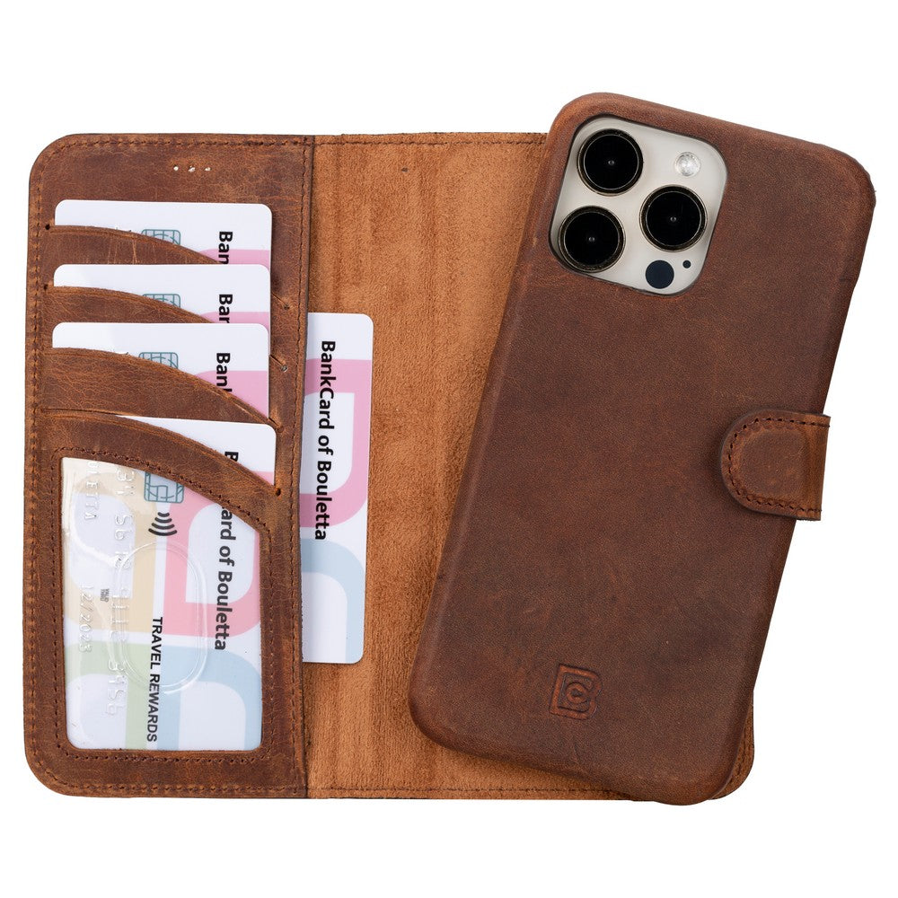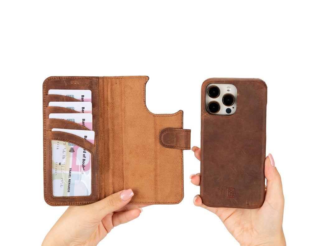 Apple iPhone 15 Pro Max uyumlu, Hakiki Deri, El Yapımı, Cüzdanlı Kılıf, G2