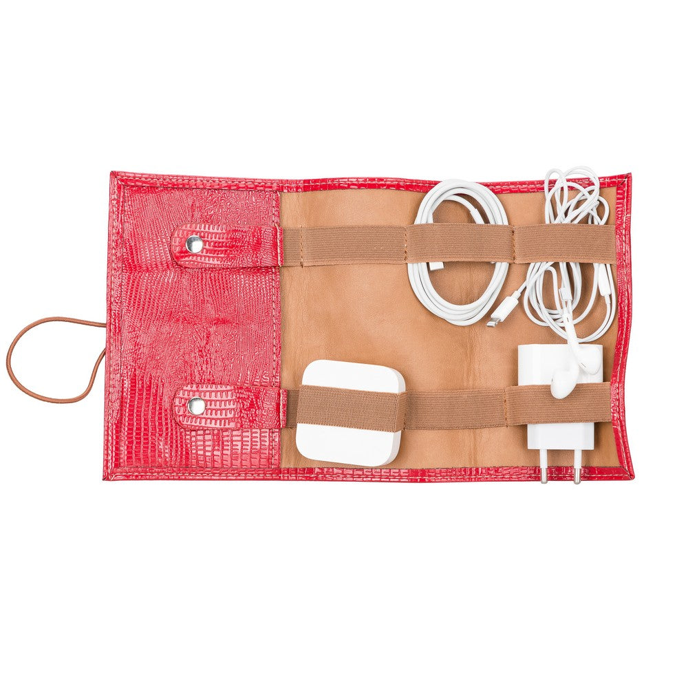 Suni Deri, El Yapımı, Kablo ve Aksesuar Taşıma Çantası, Snake Kırmızı
