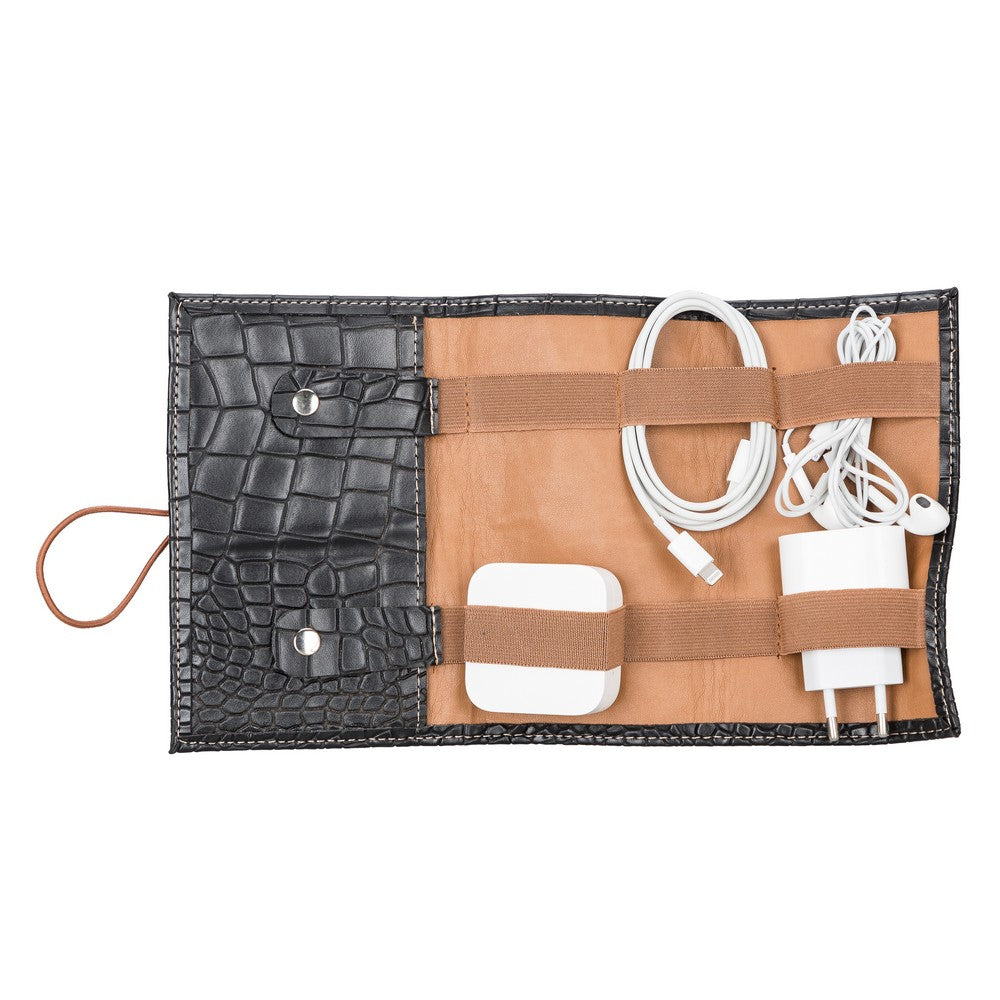 Suni Deri, El Yapımı, Kablo ve Aksesuar Taşıma Çantası, Croco Siyah