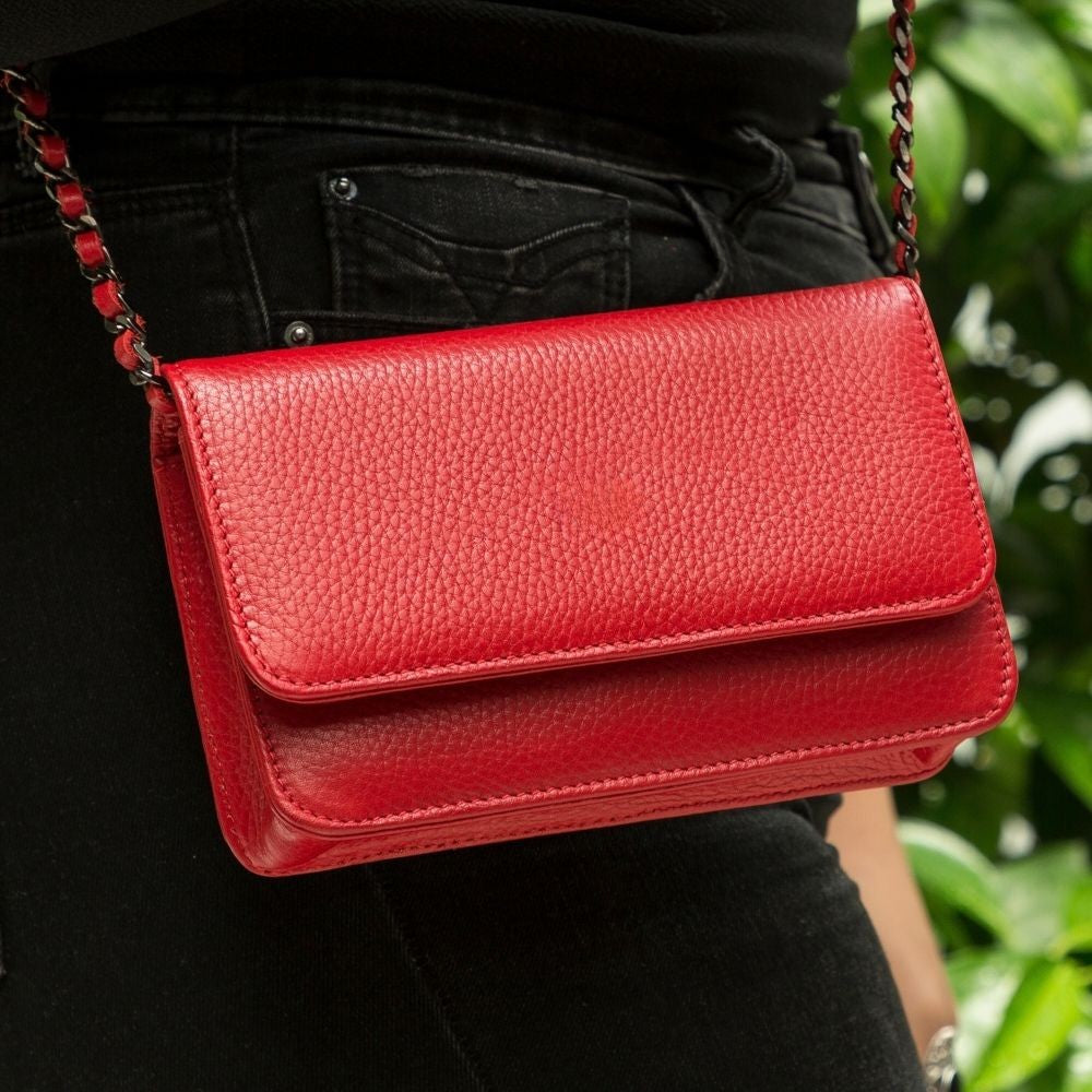 Carmela Hakiki Deri, El Yapımı Kadın Çantası, Dokulu Kırmızı Deri FL03
