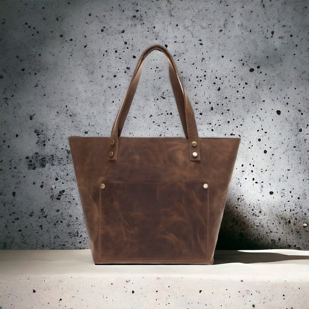 Valetto Gerçek Deri Kadın Tote Çanta – Dış Fermuar Cepli, Çoklu İç Cepli, Ayarlanabilir Askılı, Koyu Kahve