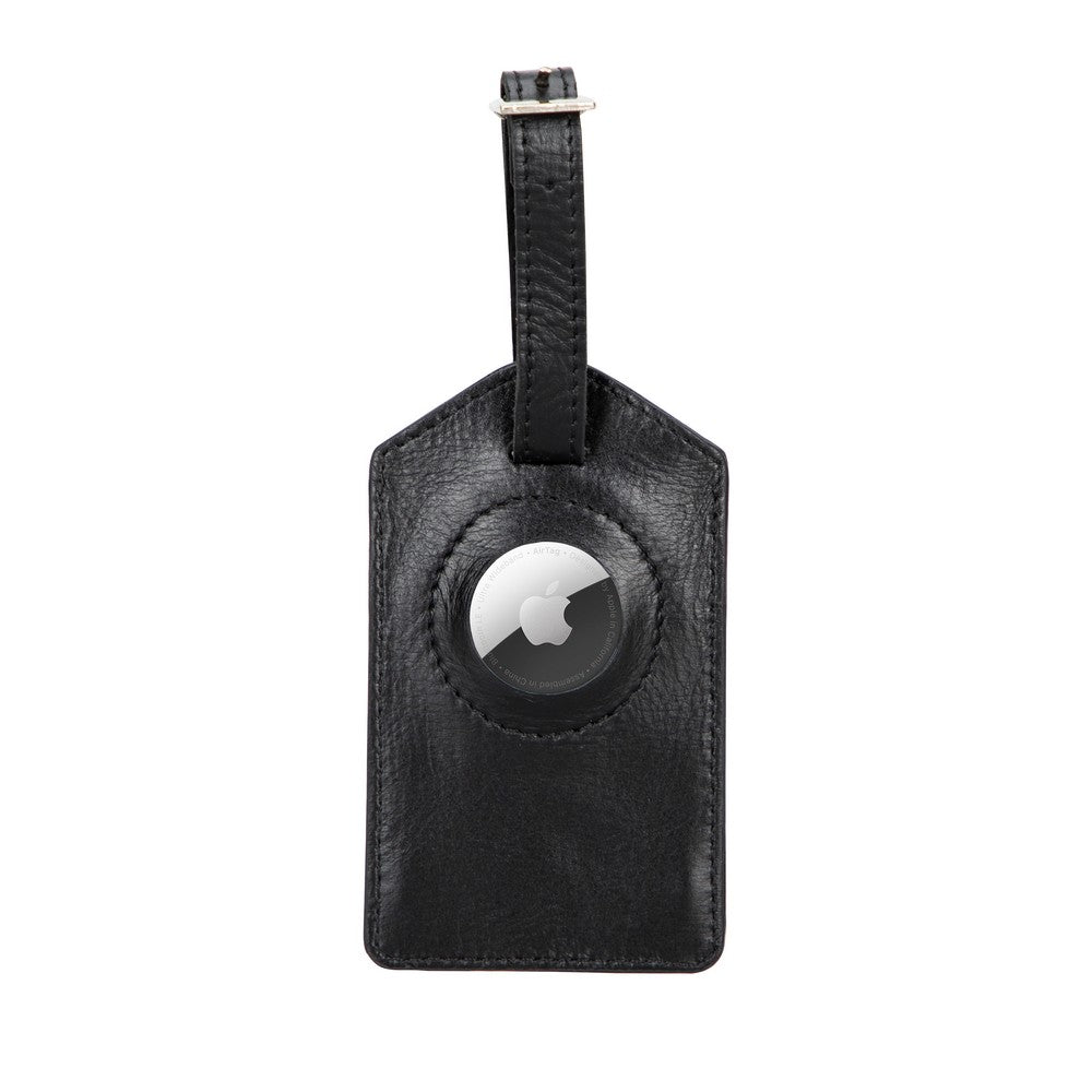 Airconrad Hakiki Deri, El Yapımı, Apple AirTag uyumlu, Bagaj Etiketi, Rustik Siyah