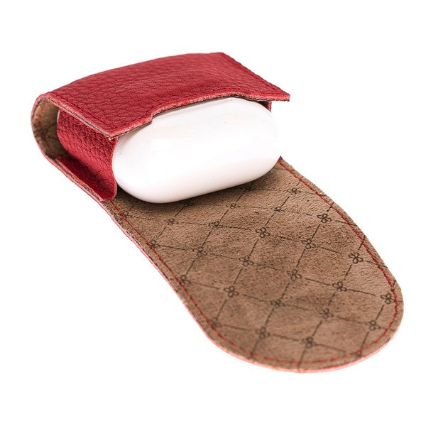 Apple AirPods 2.nesil uyumlu, Hakiki Deri, El Yapımı Kılıf, Mai Magnet ERC2 Kırmızı