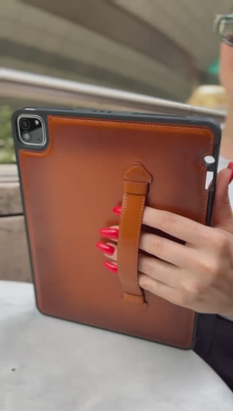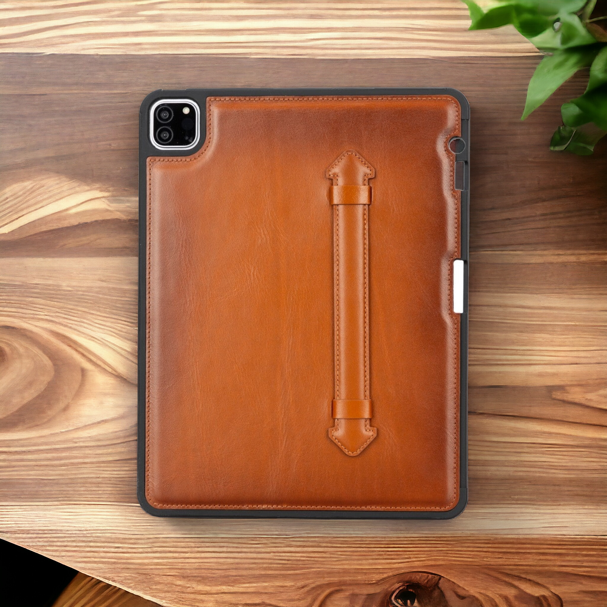 Apple iPad Pro 4.nesil uyumlu, 11 inç Hakiki Deri, El Yapımı Kılıf, Gölgeli Taba