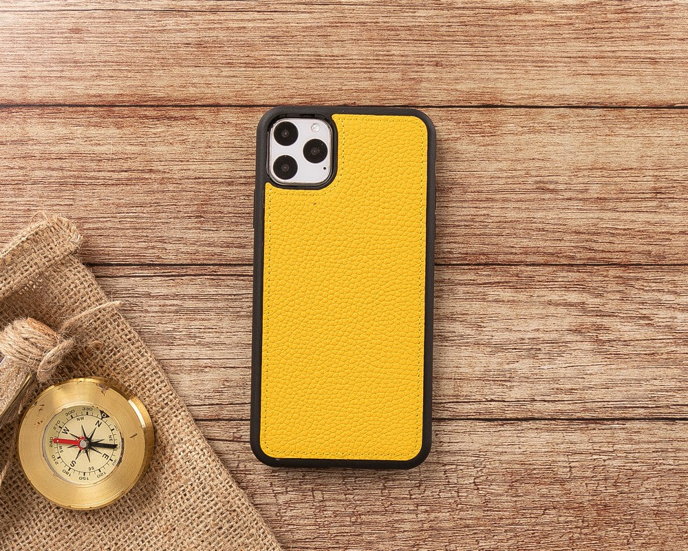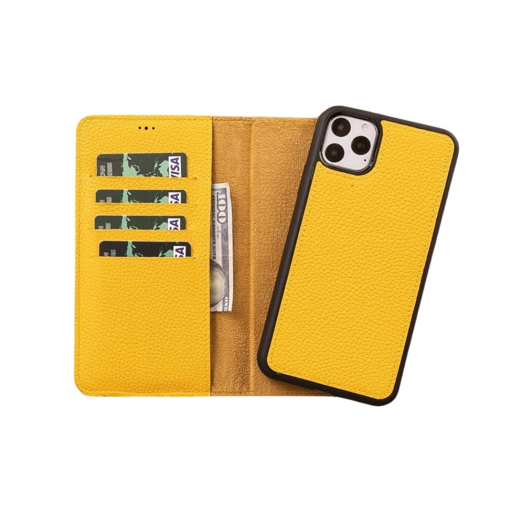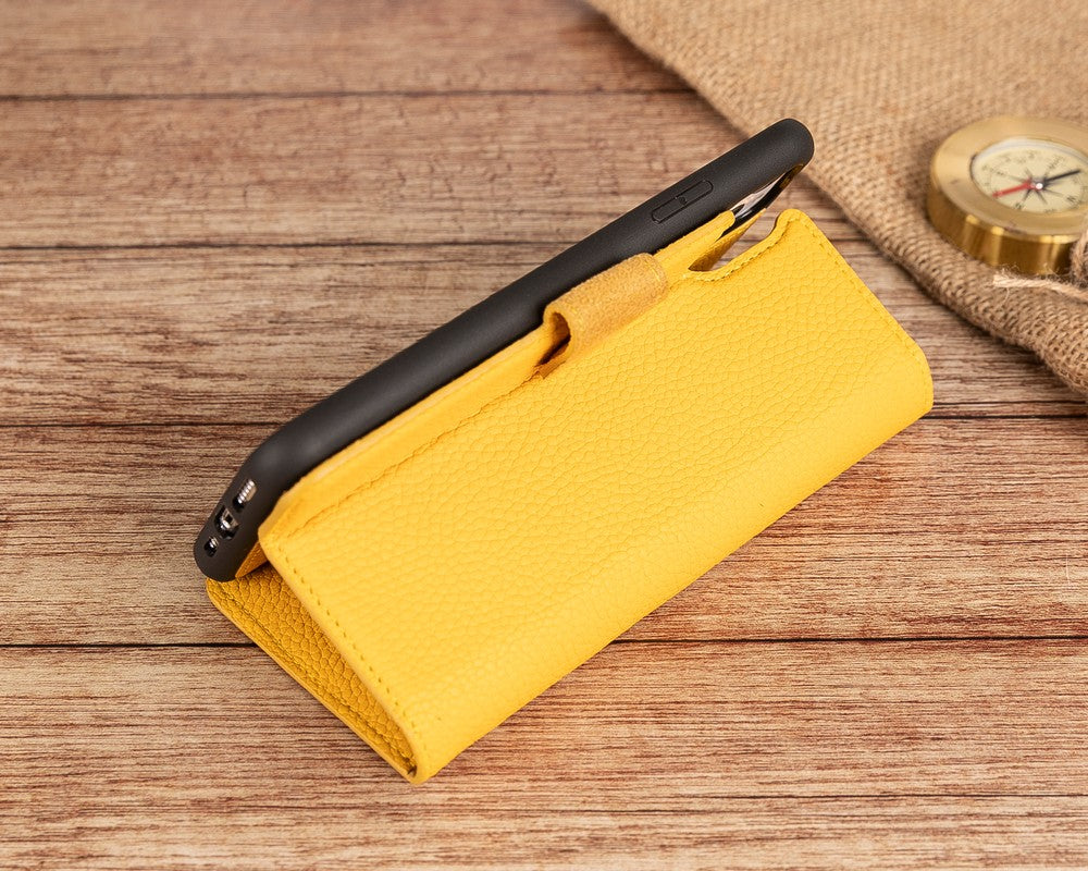 Apple iPhone 11 Pro Max uyumlu, Hakiki Deri, El Yapımı, Cüzdanlı Kılıf, FL12 Sarı