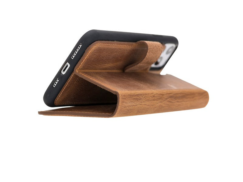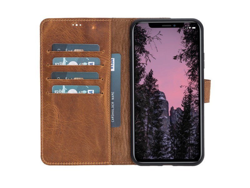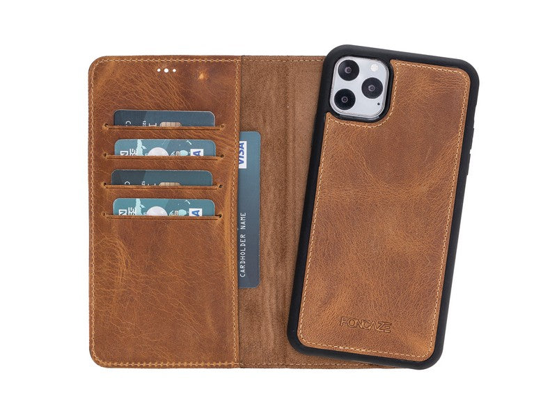 Apple iPhone 11 Pro Max uyumlu, Hakiki Deri, El Yapımı, Cüzdanlı Kılıf, Foncaze G19