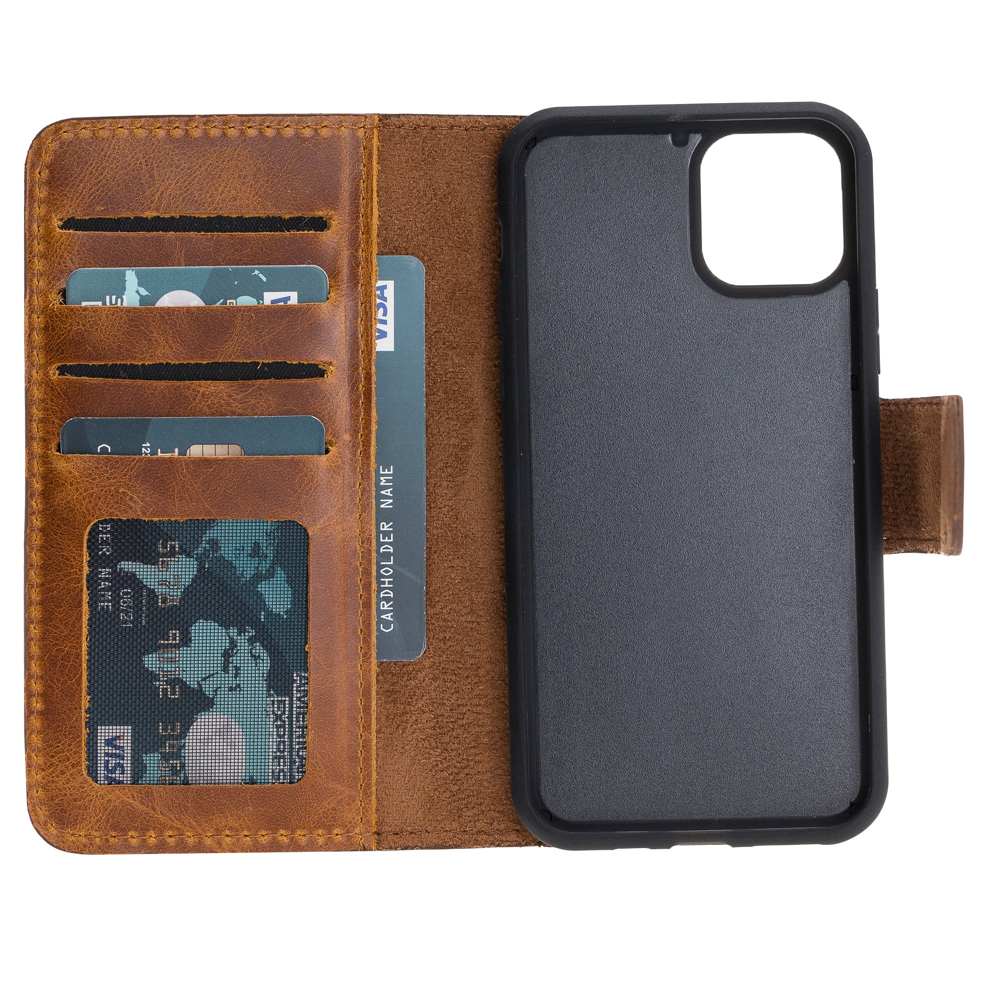 Apple iPhone 11 Pro Max uyumlu, Hakiki Deri, El Yapımı, Cüzdanlı Kılıf, G19