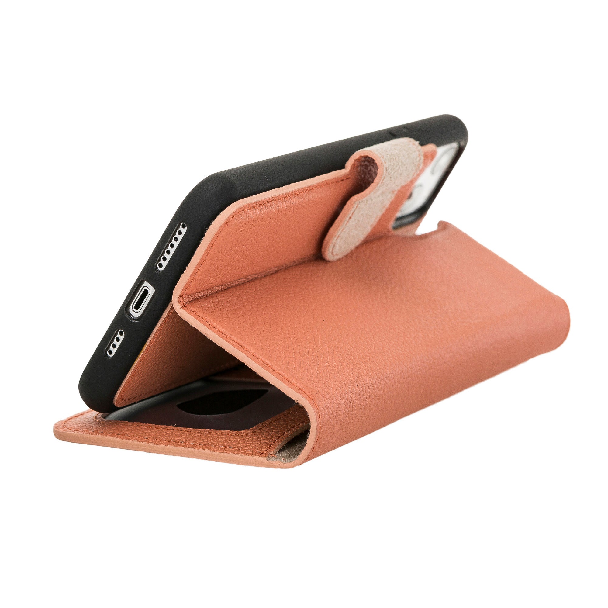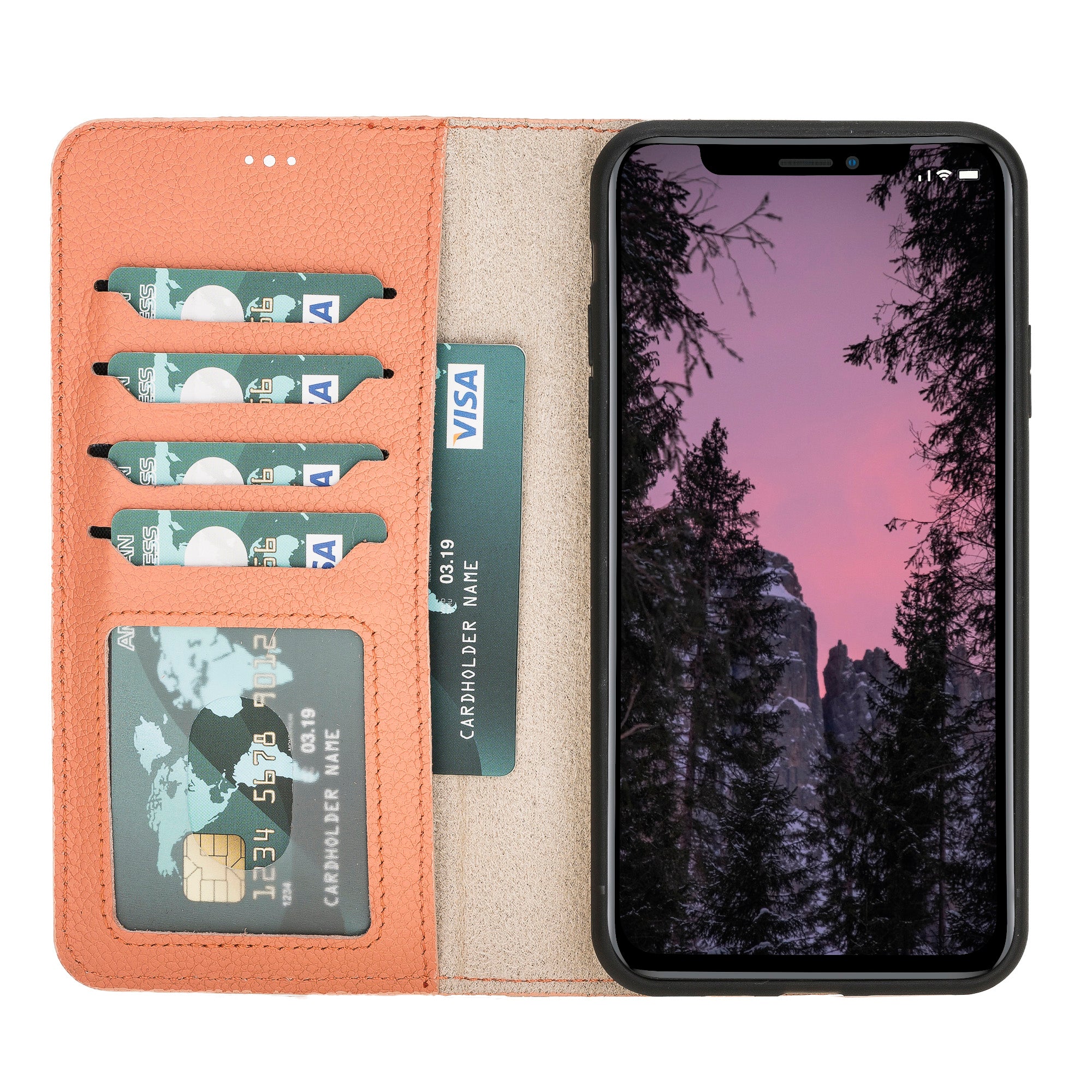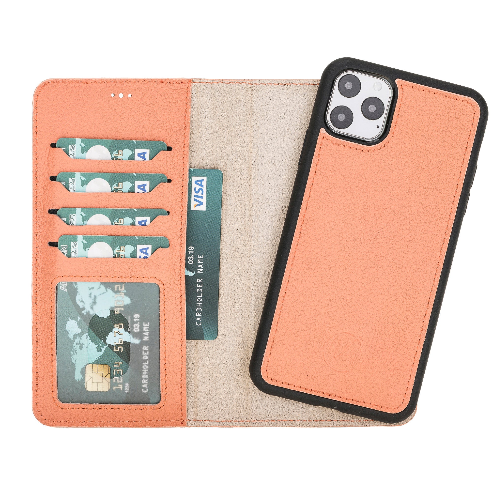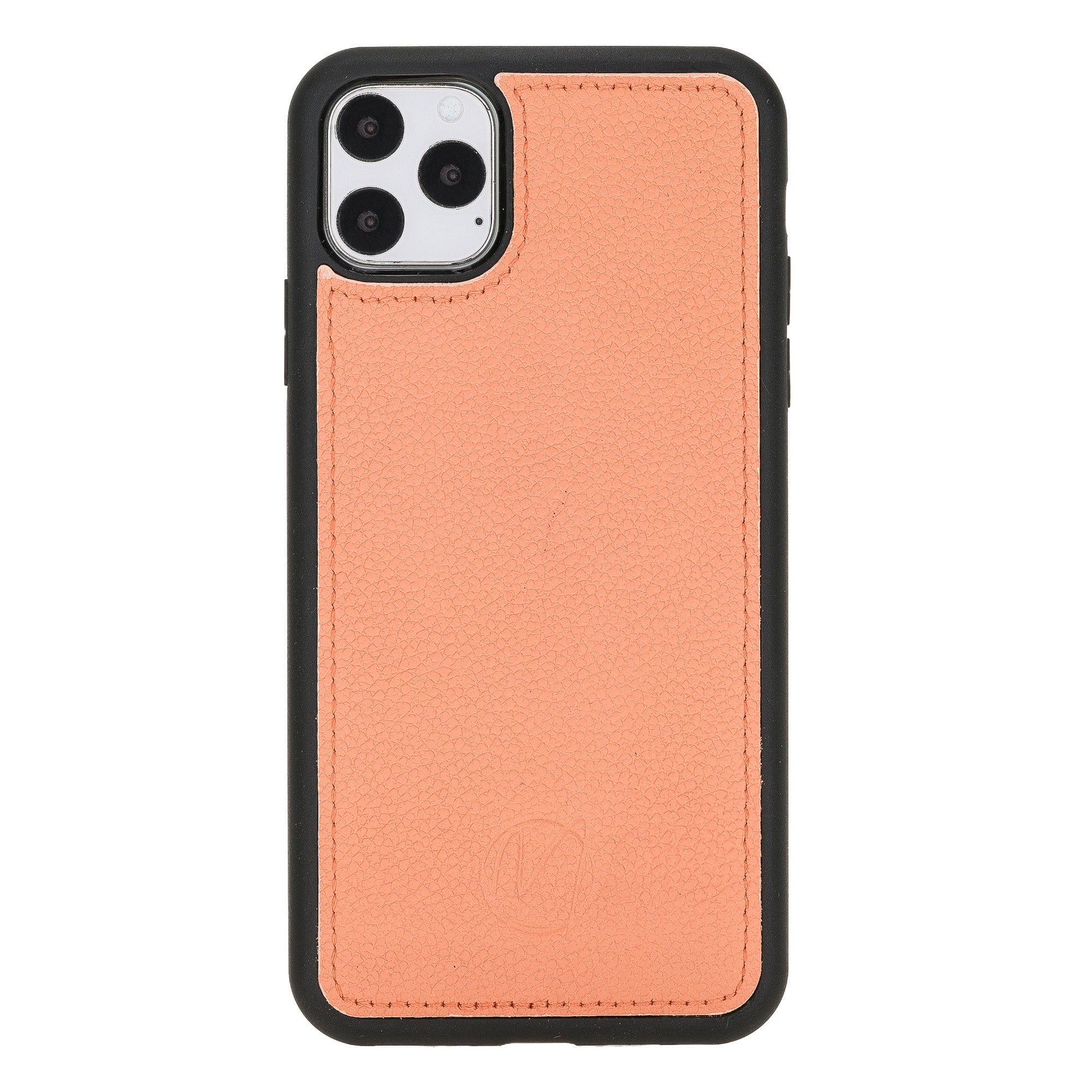 Apple iPhone 11 Pro Max uyumlu, Gerçek Hakiki Deri, El Yapımı, Kartlık Bölmeli Kılıf,, Mercan