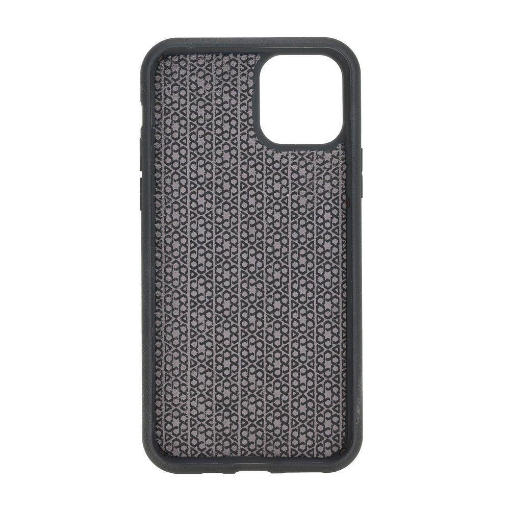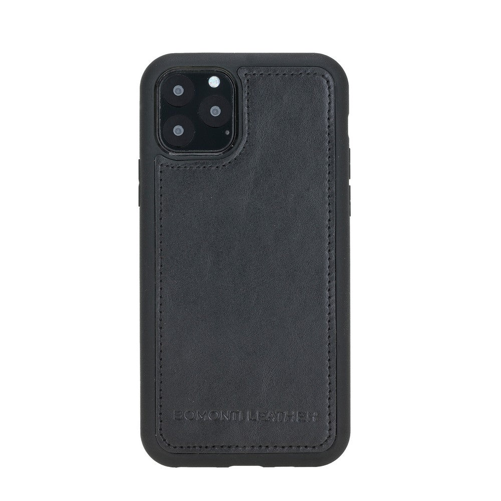 Apple iPhone 11 Pro uyumlu, Hakiki Deri, El Yapımı, Arka Kapak, Rustik Siyah