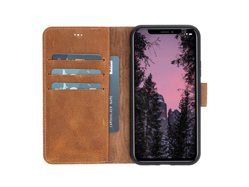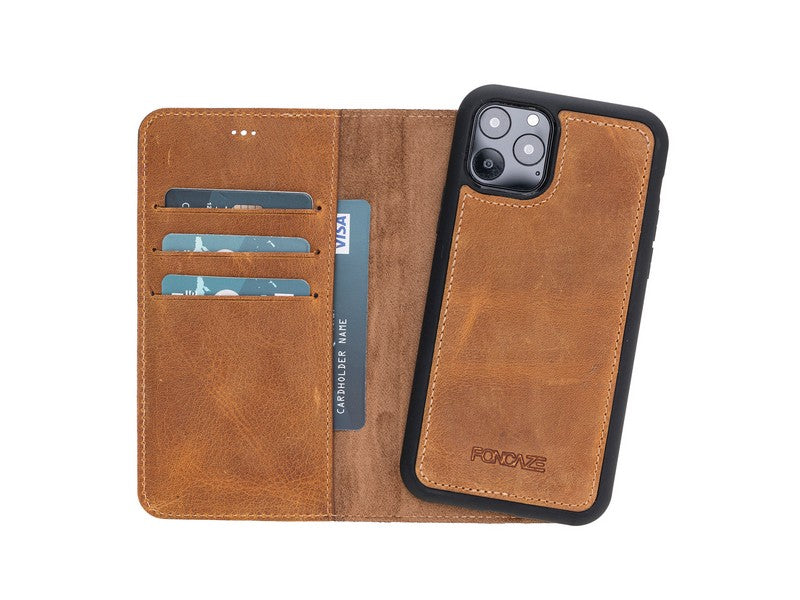 Apple iPhone 11 Pro uyumlu, Hakiki Deri, El Yapımı, Cüzdanlı Kılıf, Foncaze G19 Taba