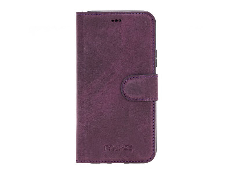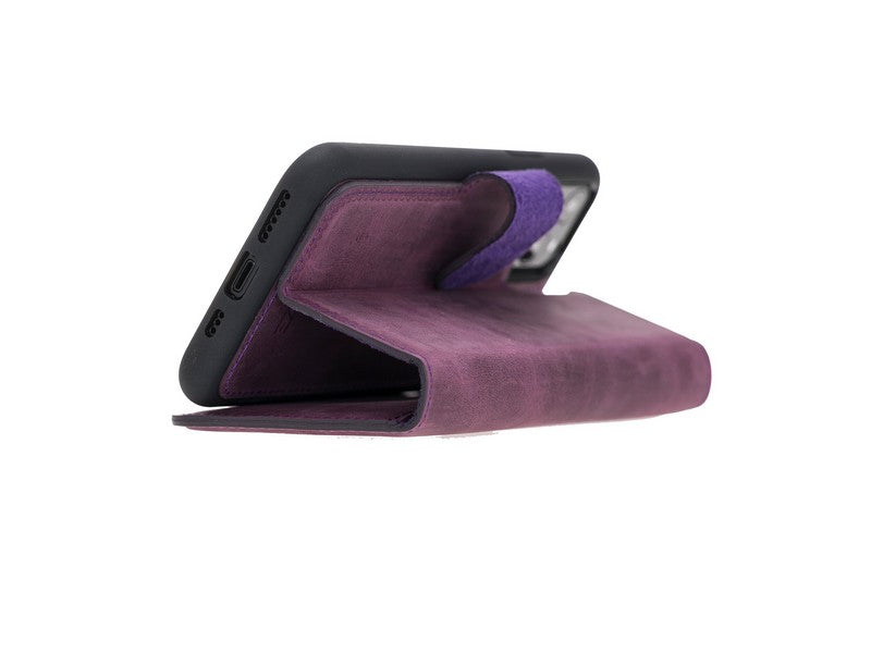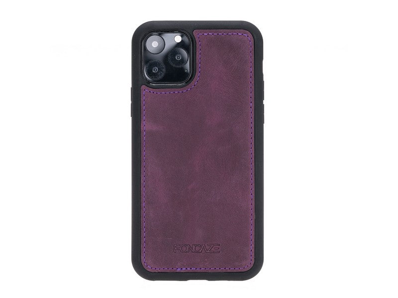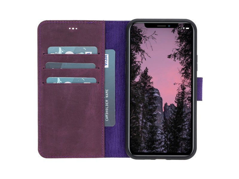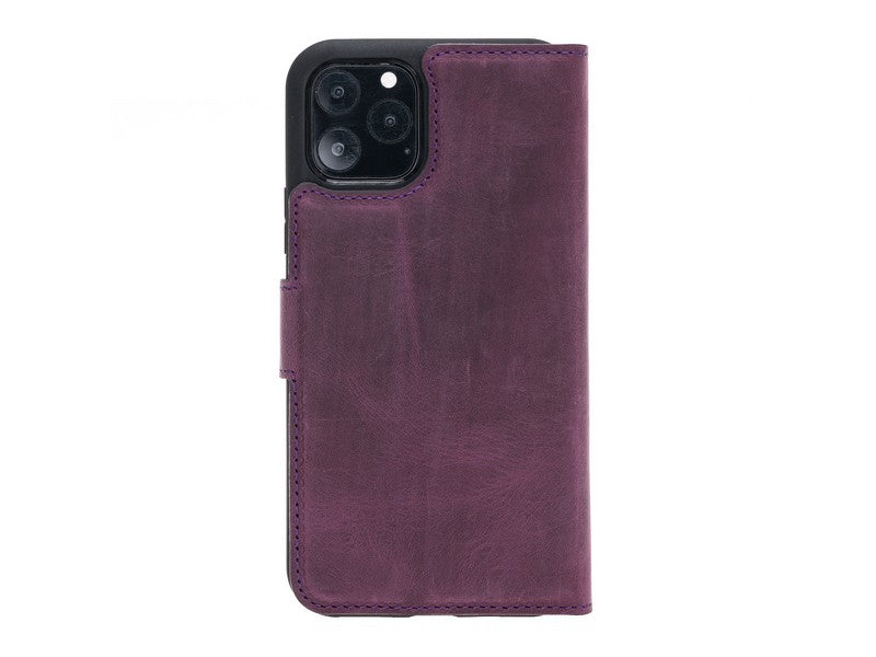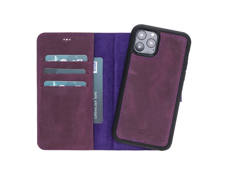 Apple iPhone 11 Pro uyumlu, Hakiki Deri, El Yapımı, Cüzdanlı Kılıf, Foncaze G7 Mor
