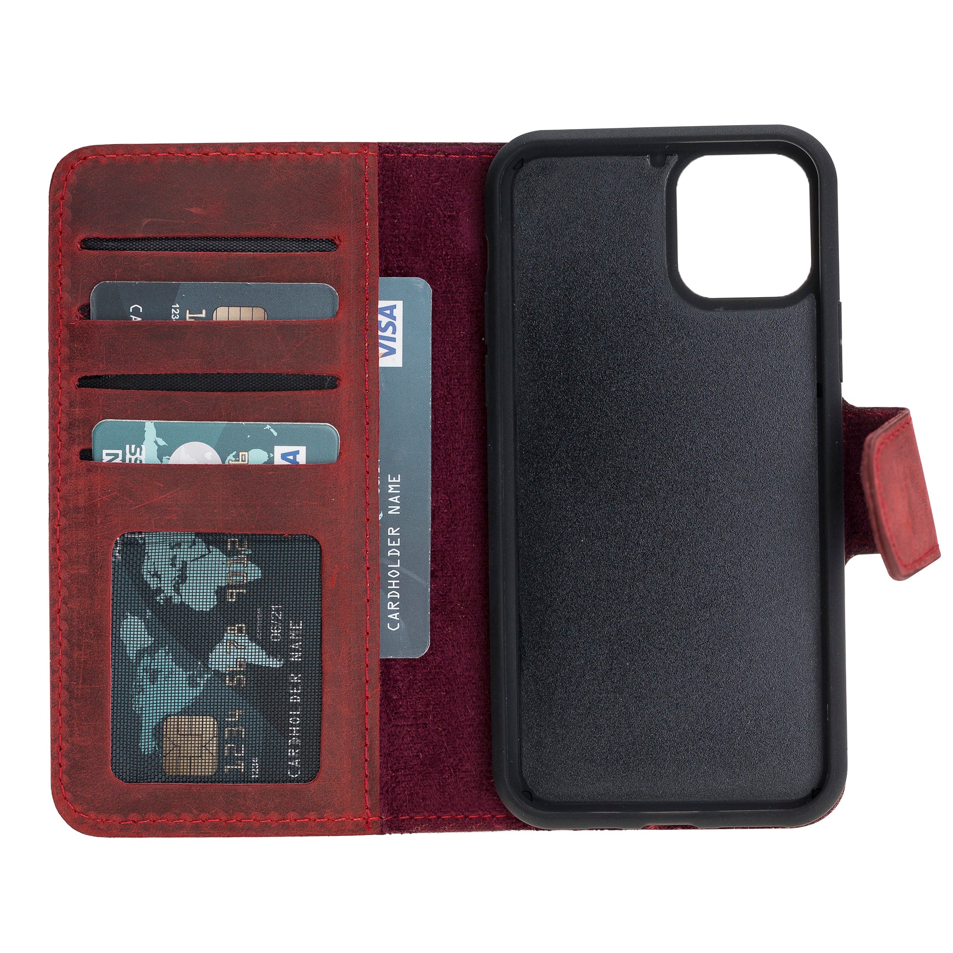 Apple iPhone 11 Pro uyumlu, Hakiki Deri, El Yapımı, Cüzdanlı Kılıf, G4 Kırmızı