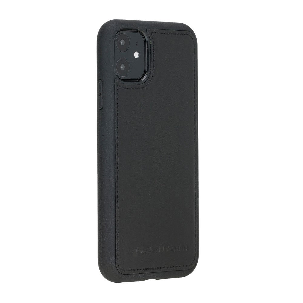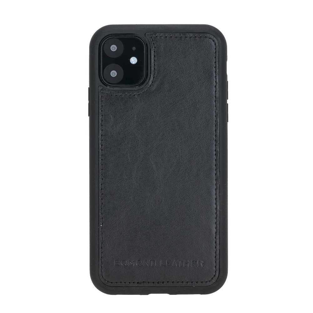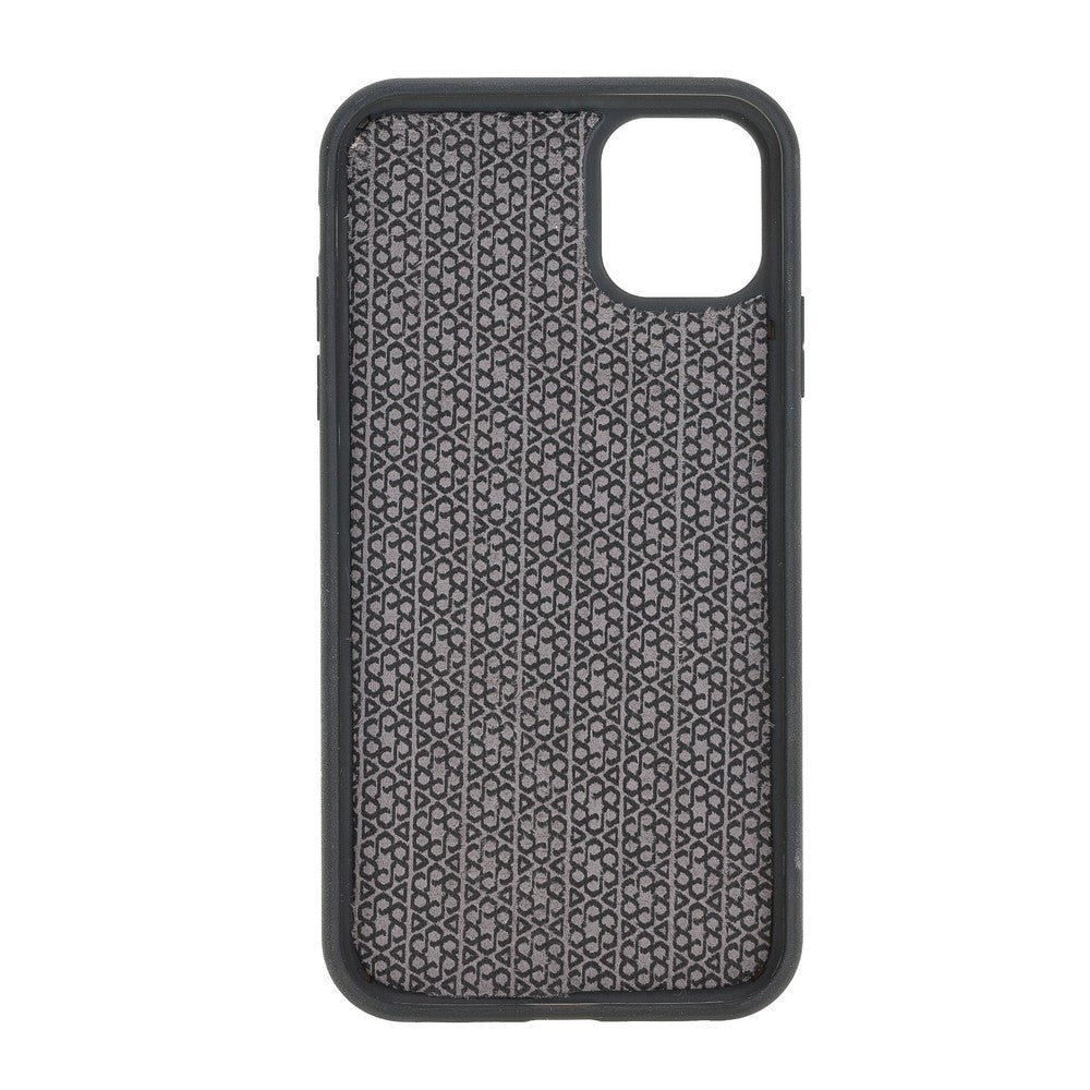 Apple iPhone 11 uyumlu, Hakiki Deri, El Yapımı, Arka Kapak, Rustik Siyah