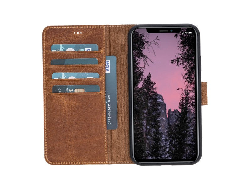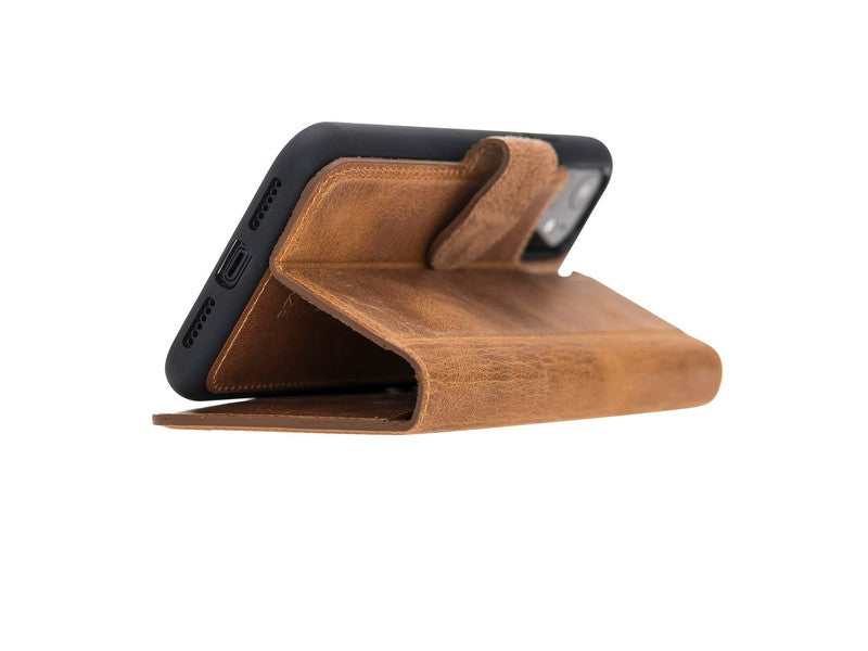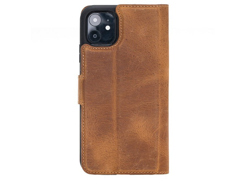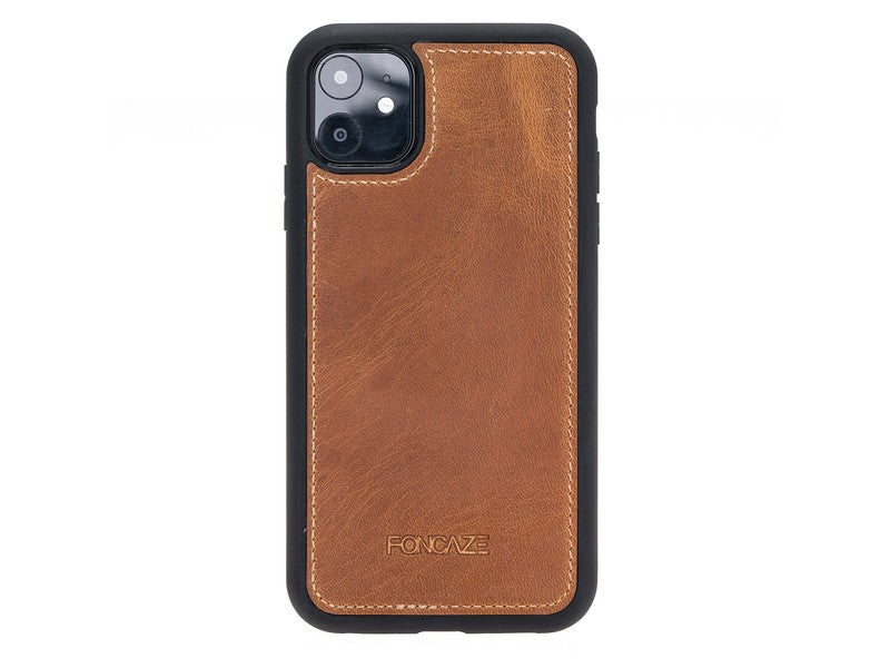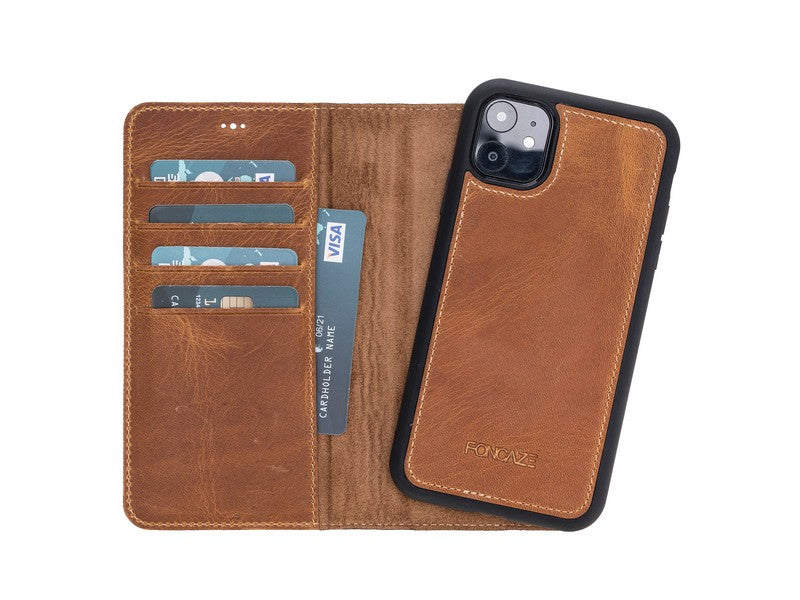 Apple iPhone 11 uyumlu, Hakiki Deri, El Yapımı, Cüzdanlı Kılıf, Foncaze G19 Taba