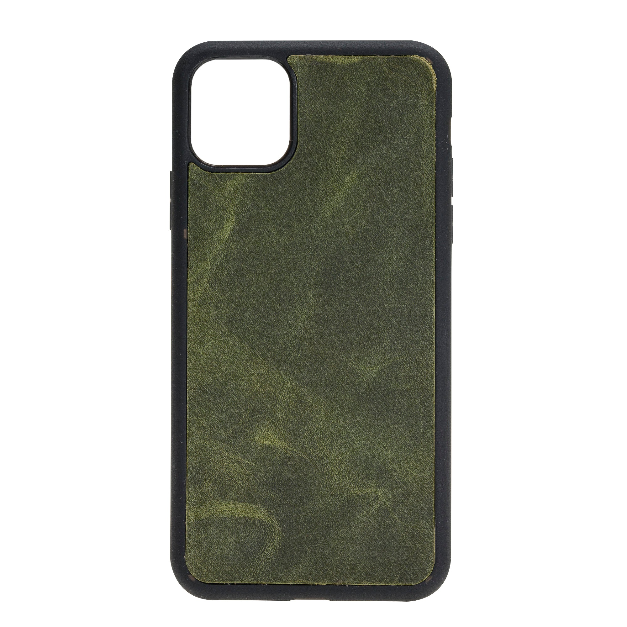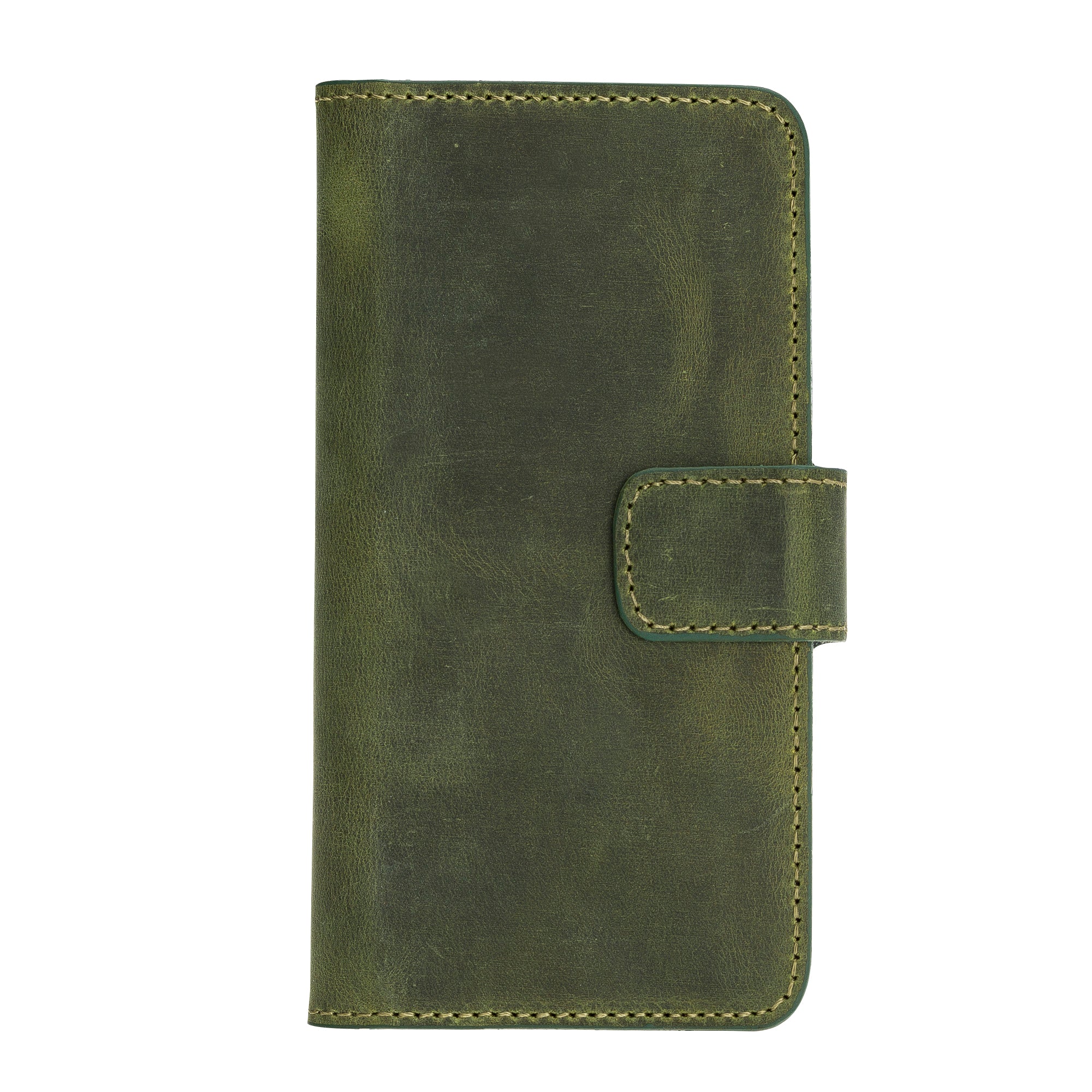 Apple iPhone 11 uyumlu, Hakiki Deri, El Yapımı, Cüzdanlı Kılıf, G16 Yeşil