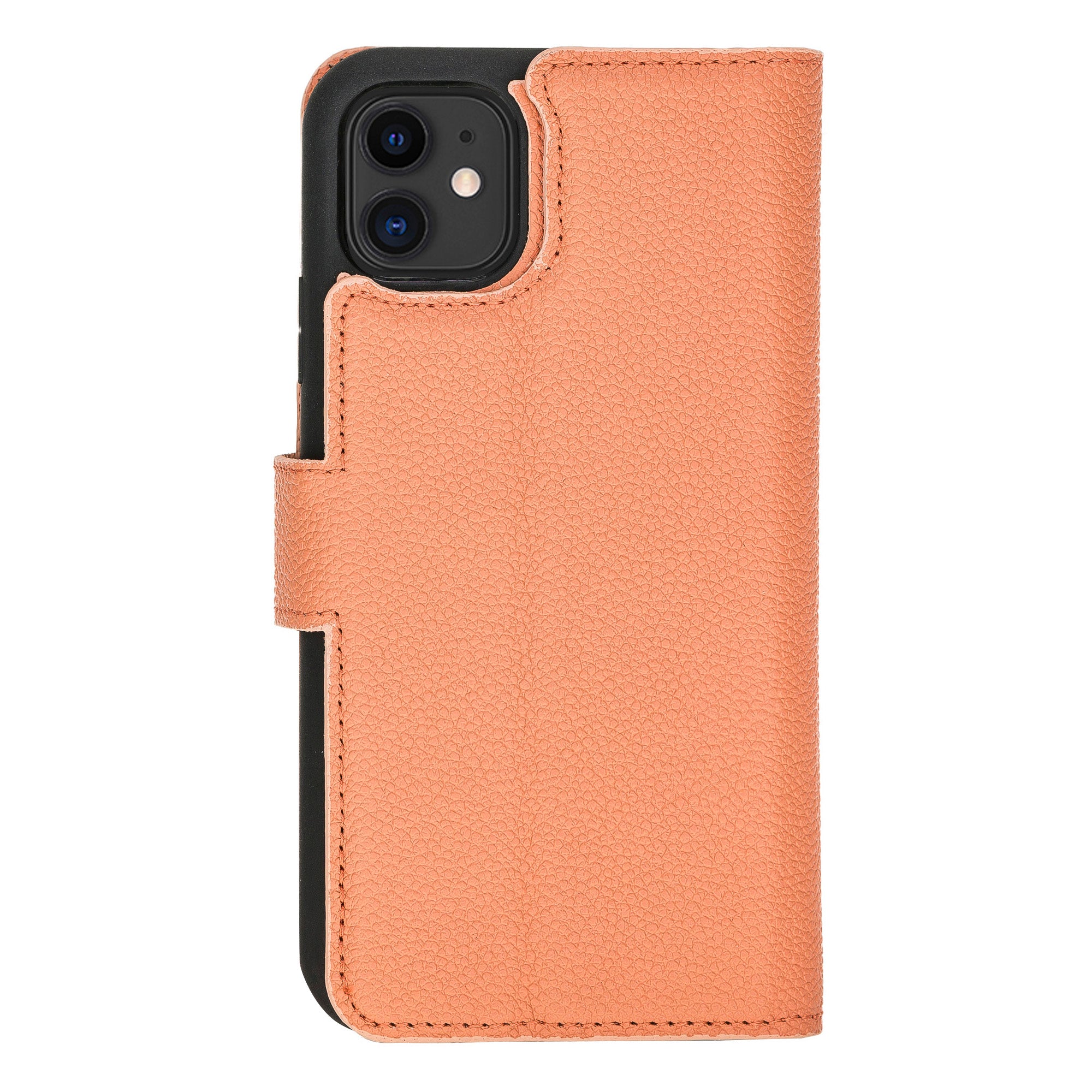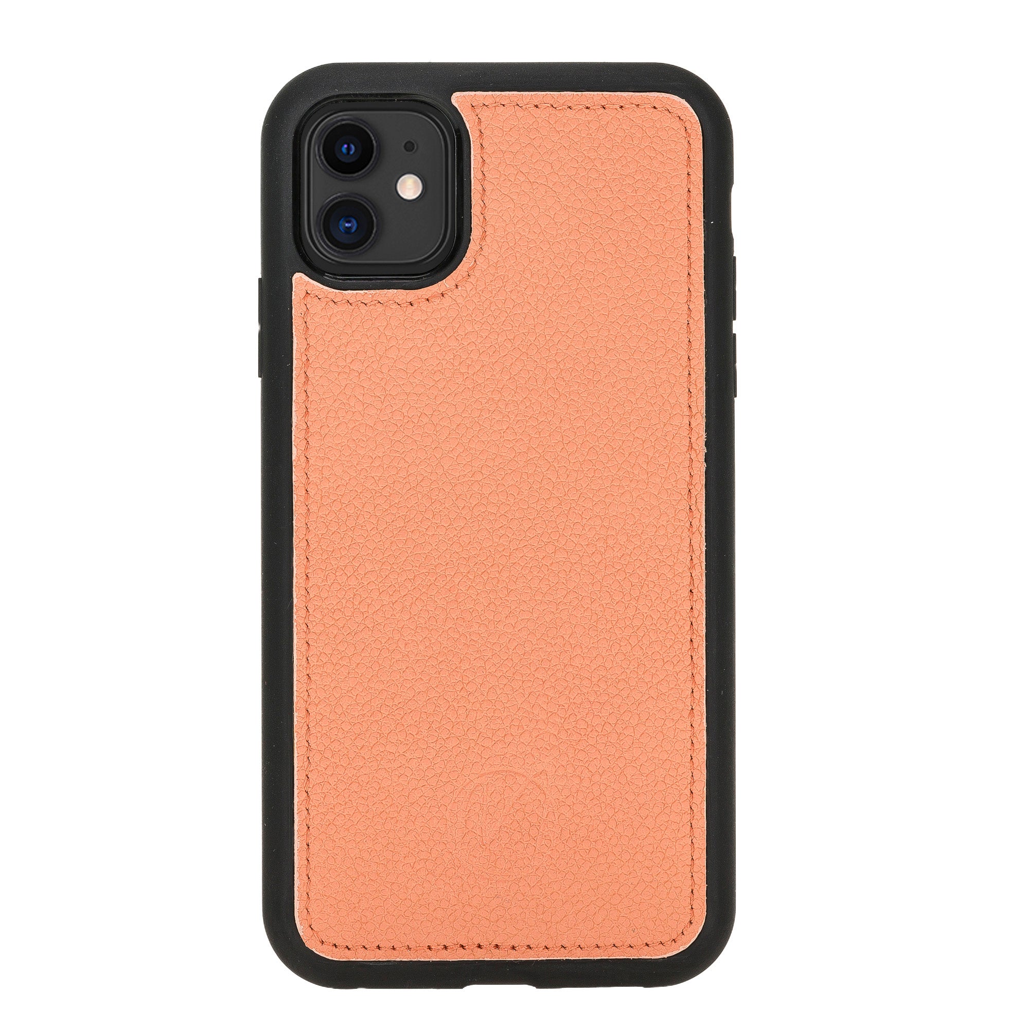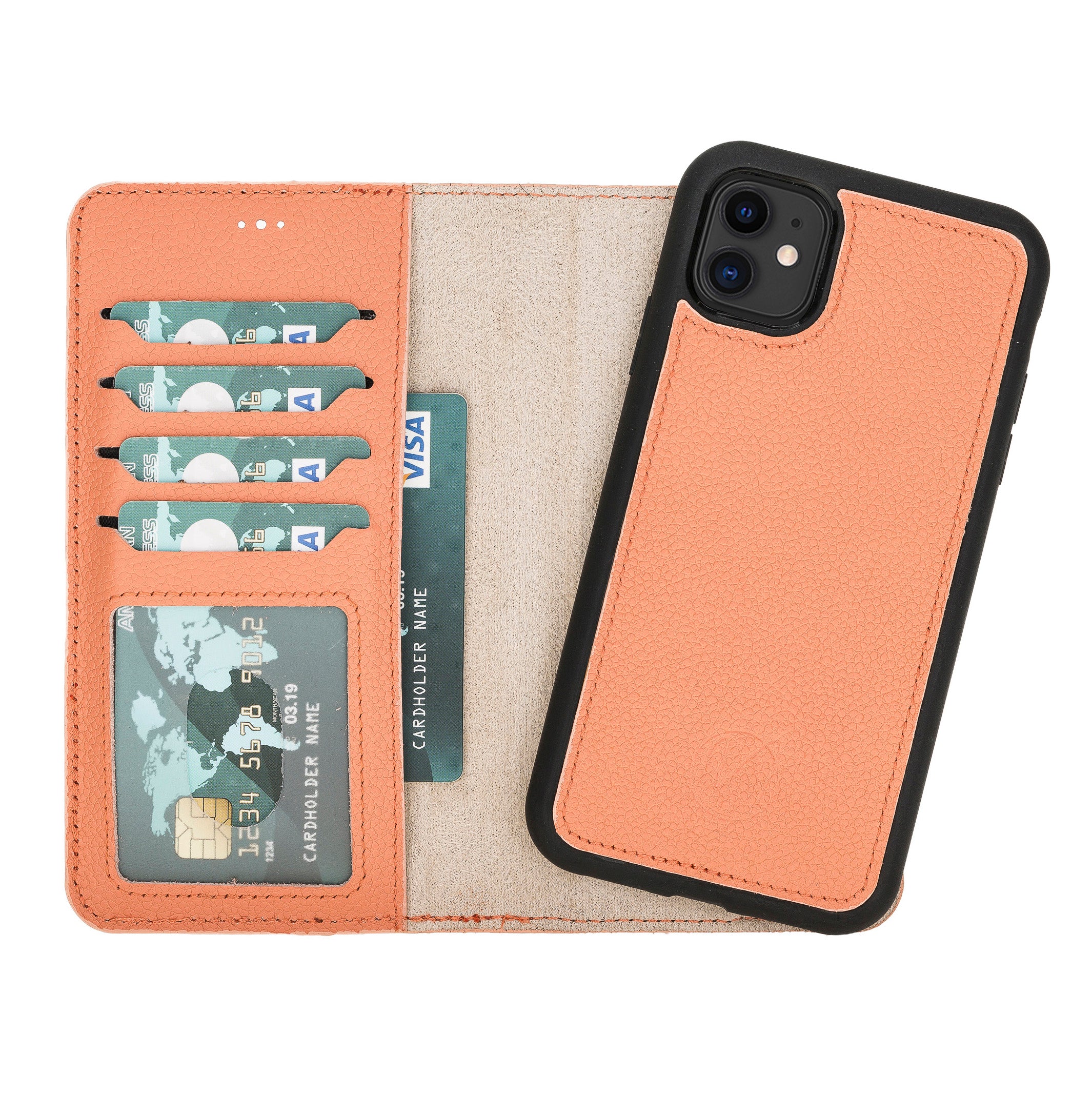 Apple iPhone 11 uyumlu, Gerçek Hakiki Deri, El Yapımı, Kartlık Bölmeli Kılıf,, Mercan