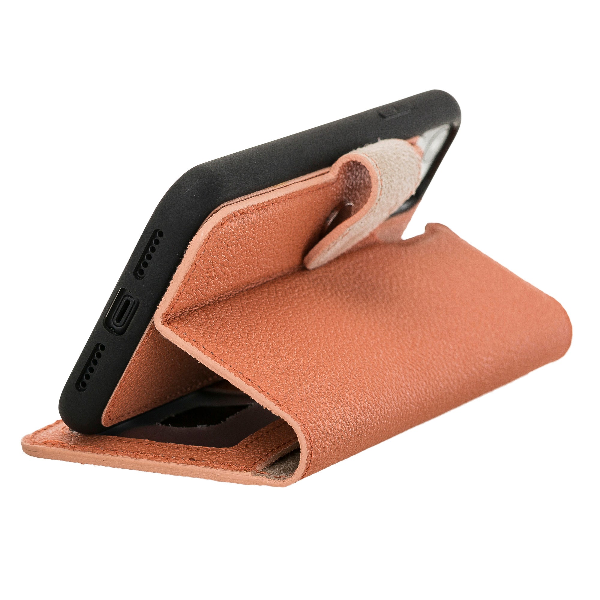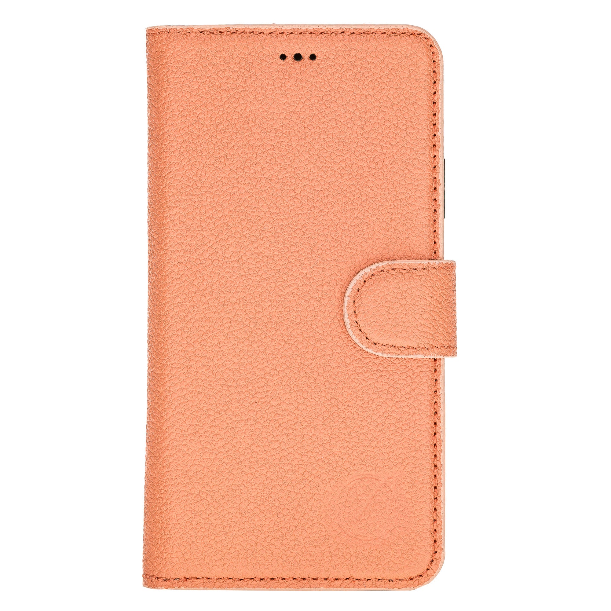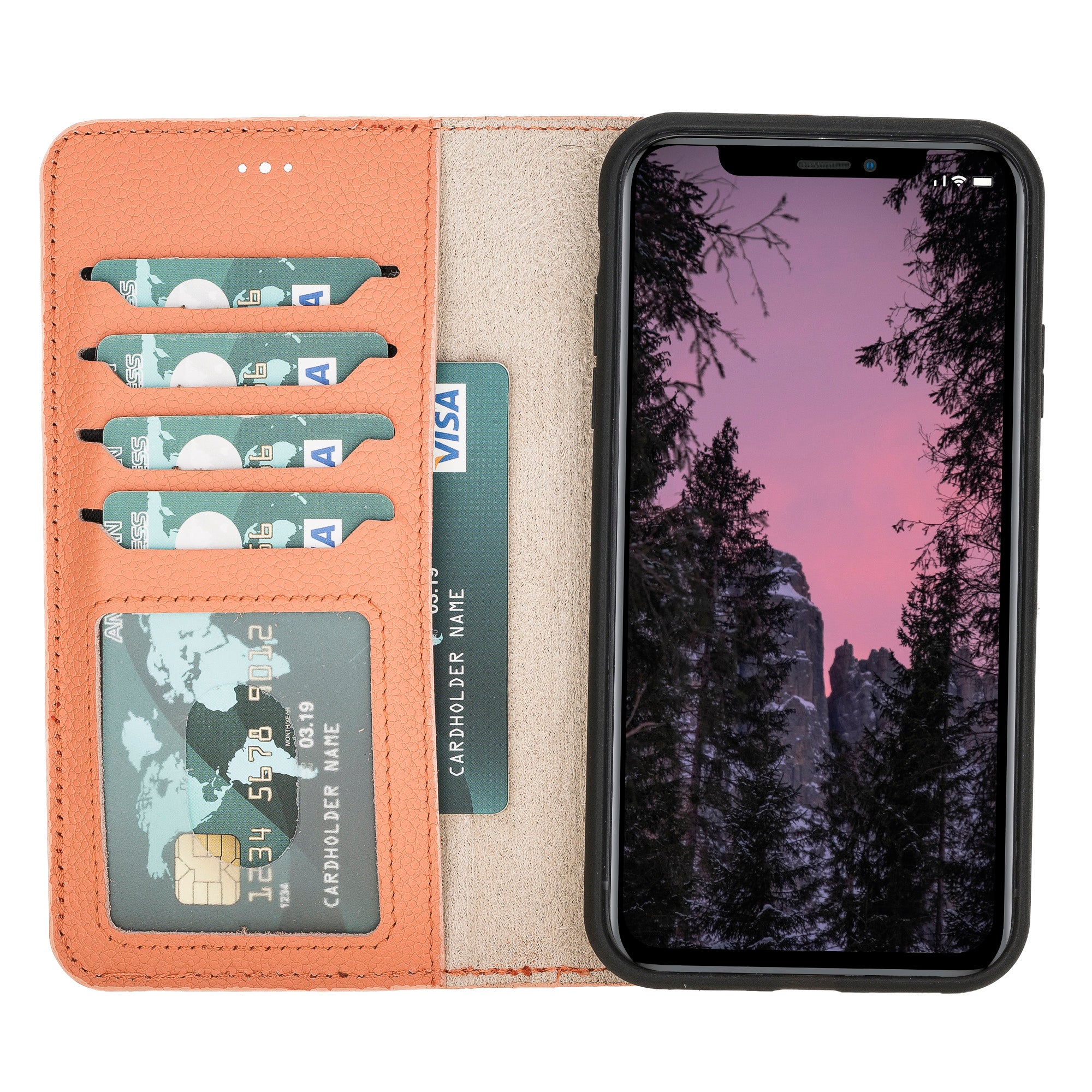 Apple iPhone 11 uyumlu, Gerçek Hakiki Deri, El Yapımı, Kartlık Bölmeli Kılıf,, Mercan