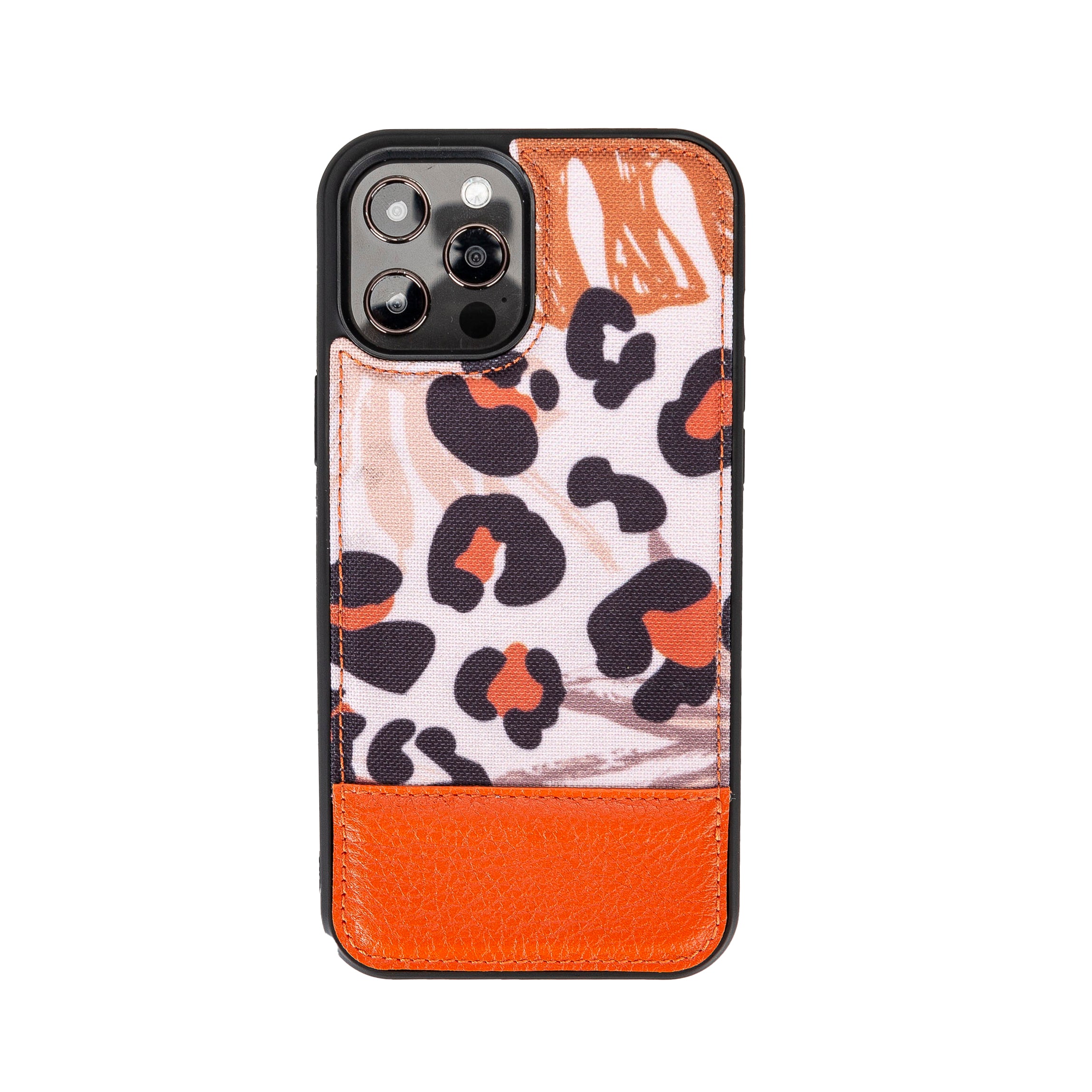 Apple iPhone 12 Pro Max uyumlu, Kanvas Kumaş Arka Kapak Leopar