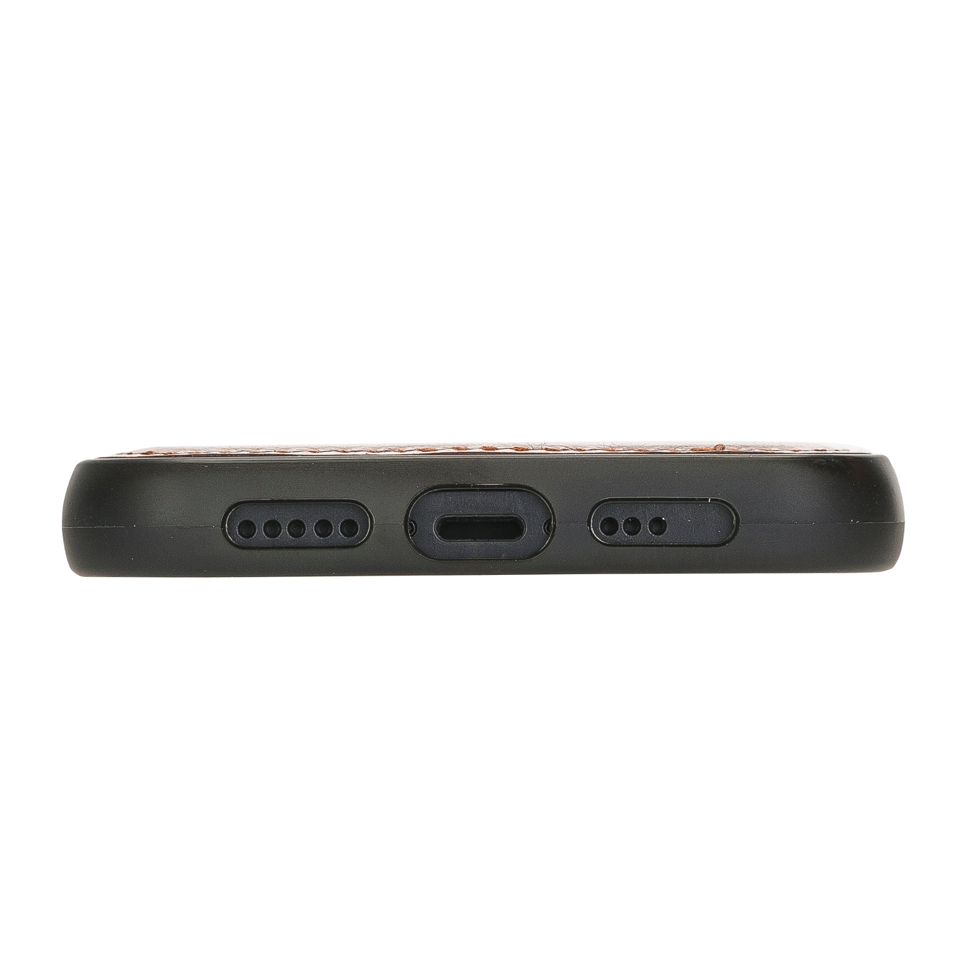 Apple iPhone 12 uyumlu, Hakiki Deri, El Yapımı, Arka Kapak, Gölgeli Taba