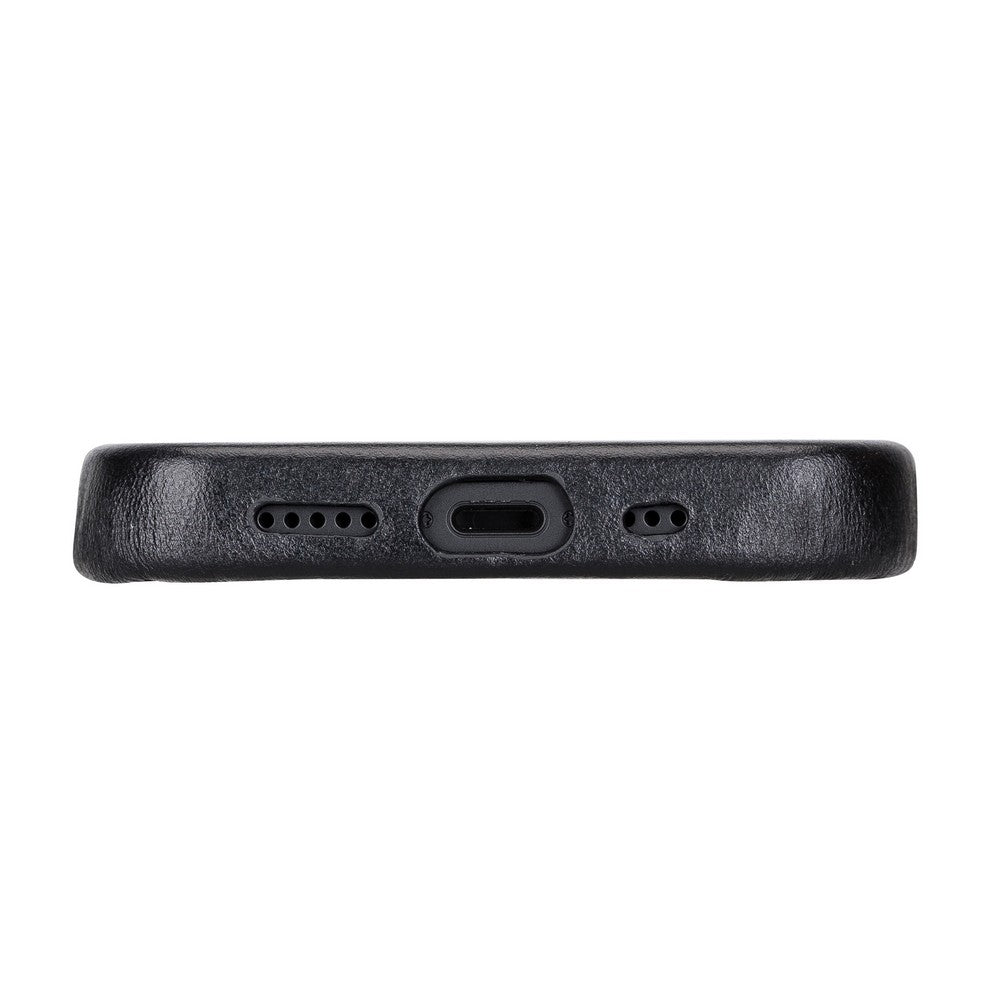 Apple iPhone 13 Mini uyumlu, Hakiki Deri, El Yapımı, Arka Kapak, ROCK Rustik Siyah