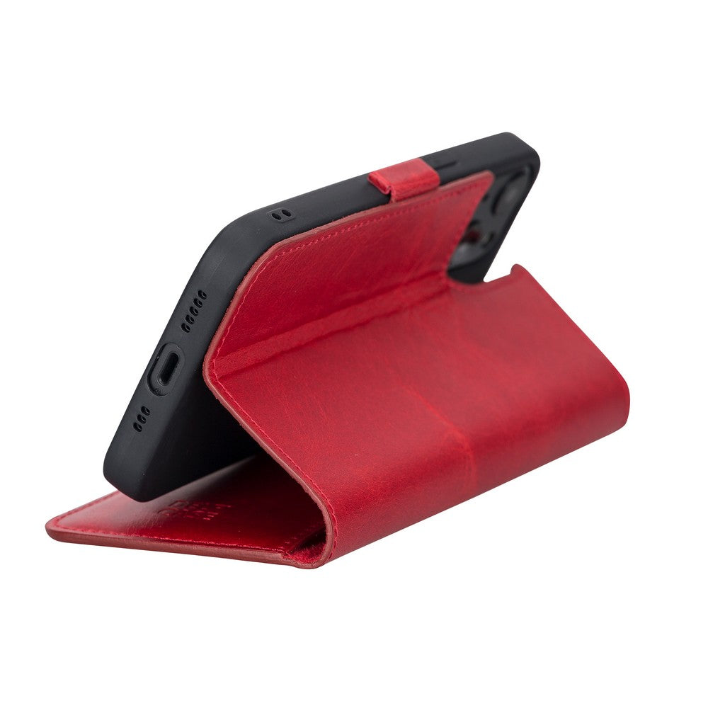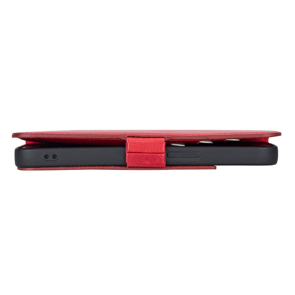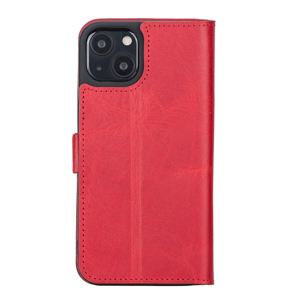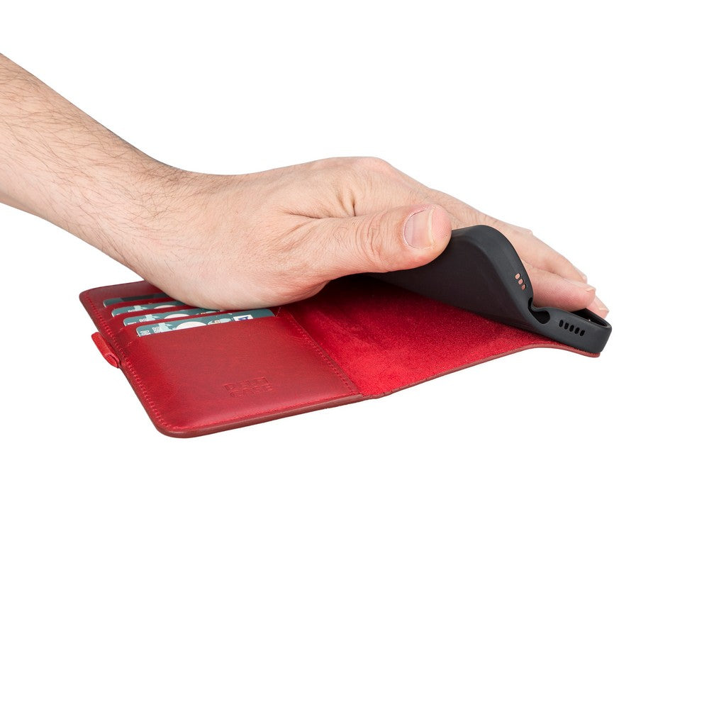 Apple iPhone 13 uyumlu, Hakiki Deri, El Yapımı, Cüzdanlı Kılıf, Nar Çiçeği