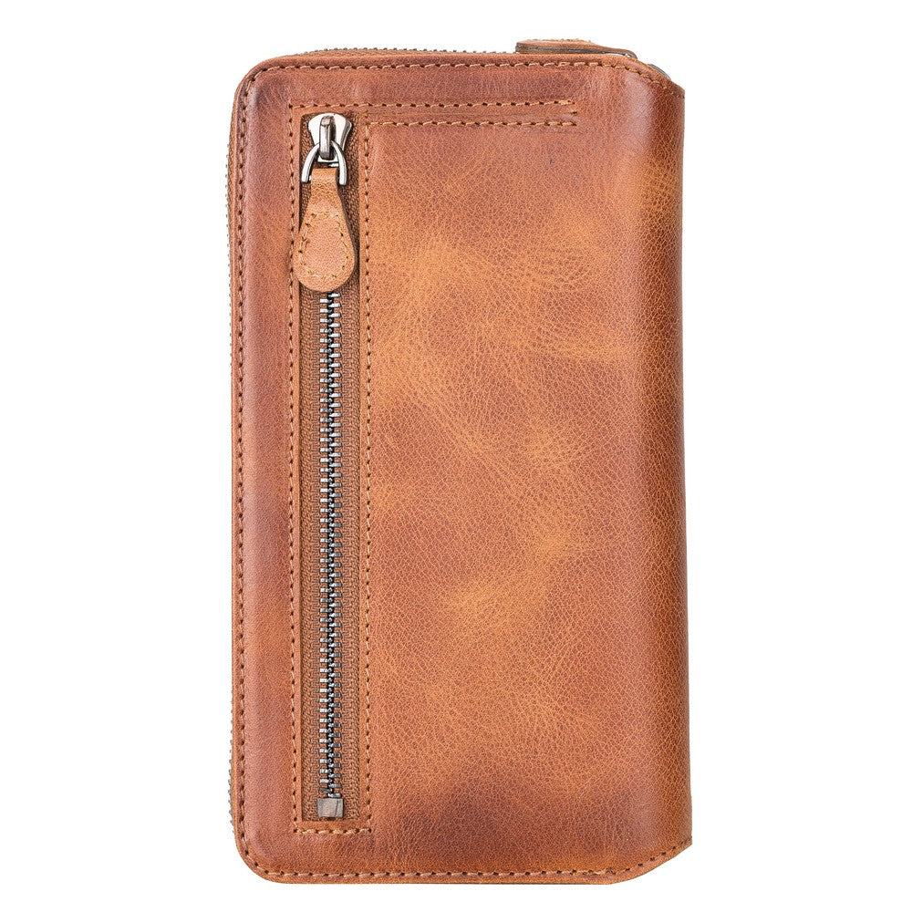 Apple iPhone 13 Uyumlu Hakiki Deri, El Yapımı, Cüzdanlı Kılıf, Karamel