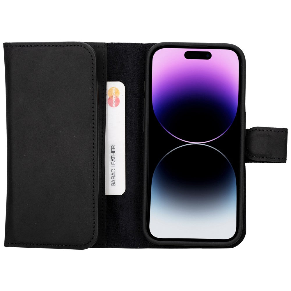 Apple iPhone 15 Pro uyumlu, Hakiki Deri, El Yapımı, Cüzdanlı Kılıf, G1