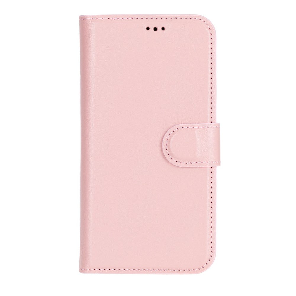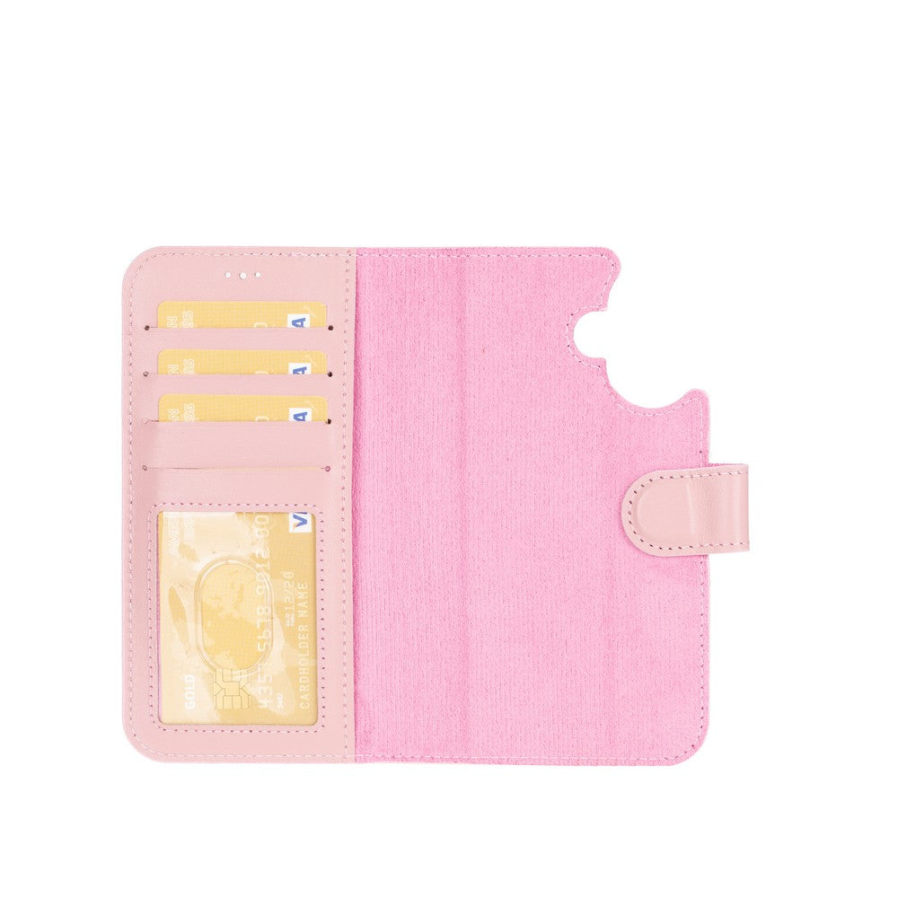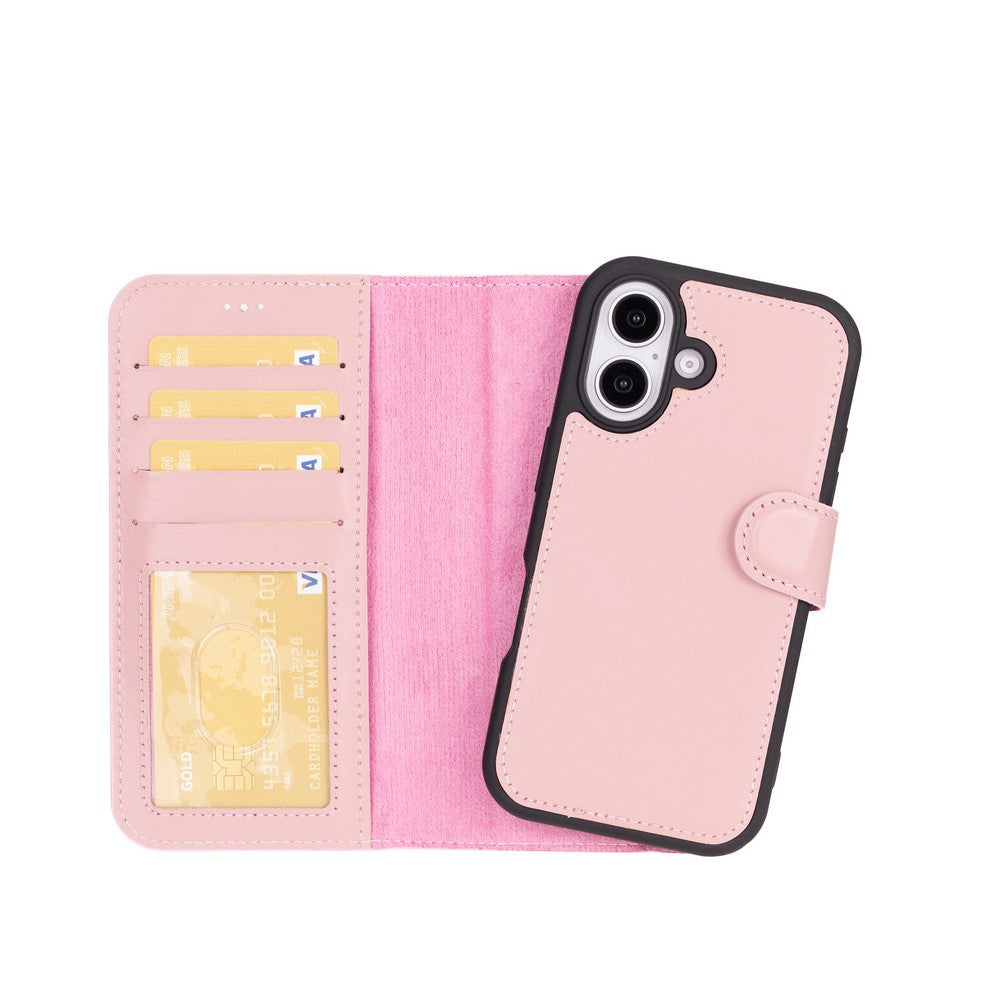 Apple iPhone 16 Plus uyumlu, Hakiki Deri, El Yapımı, Cüzdanlı Kılıf, Toz Pembe