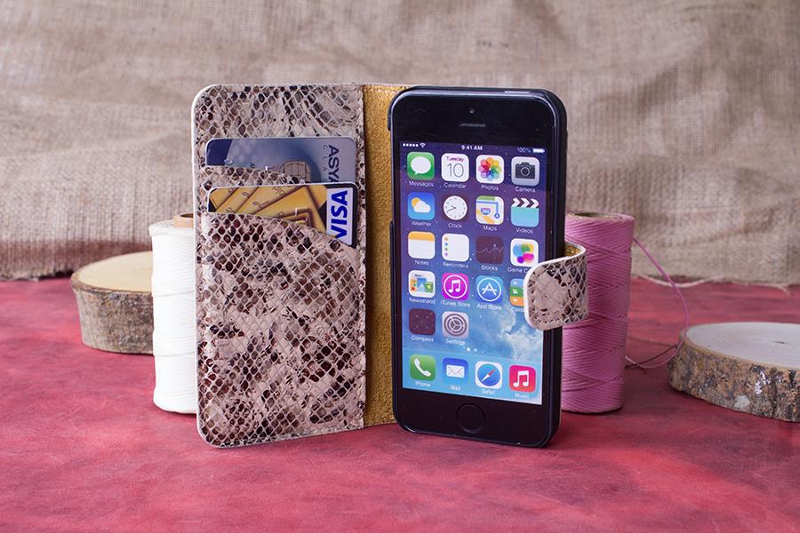 Apple iPhone 5-5s-SE Uyumlu Deri Cüzdanlı Kılıf WC00 Y2 Bej