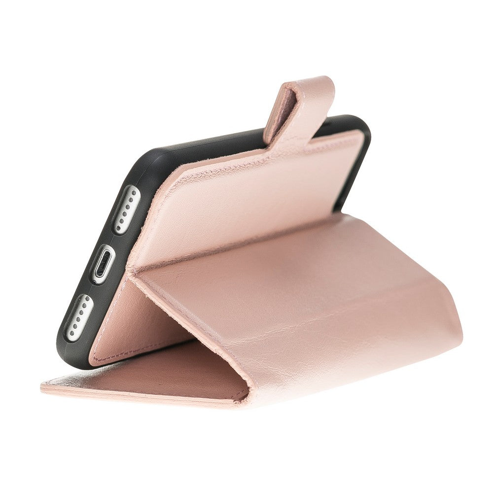 Apple iPhone 7-8 Plus Uyumlu Deri Cüzdanlı Kılıf NU2 Pembe