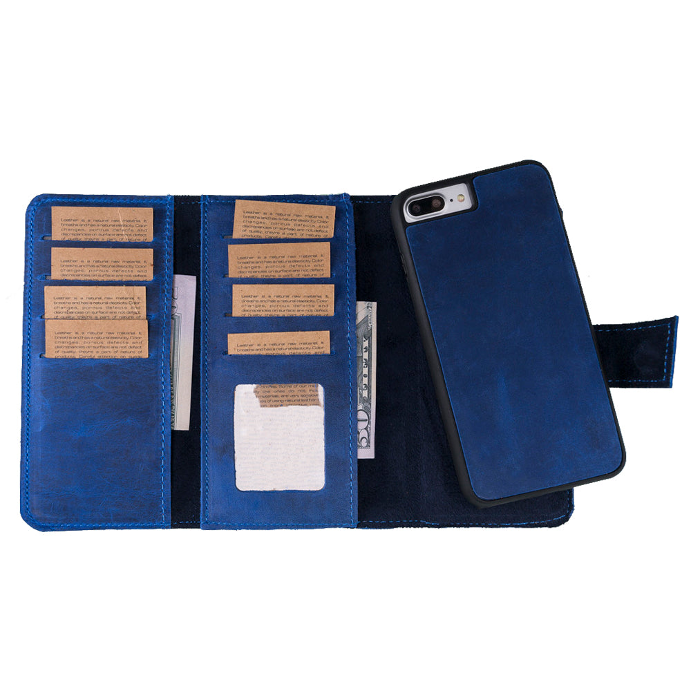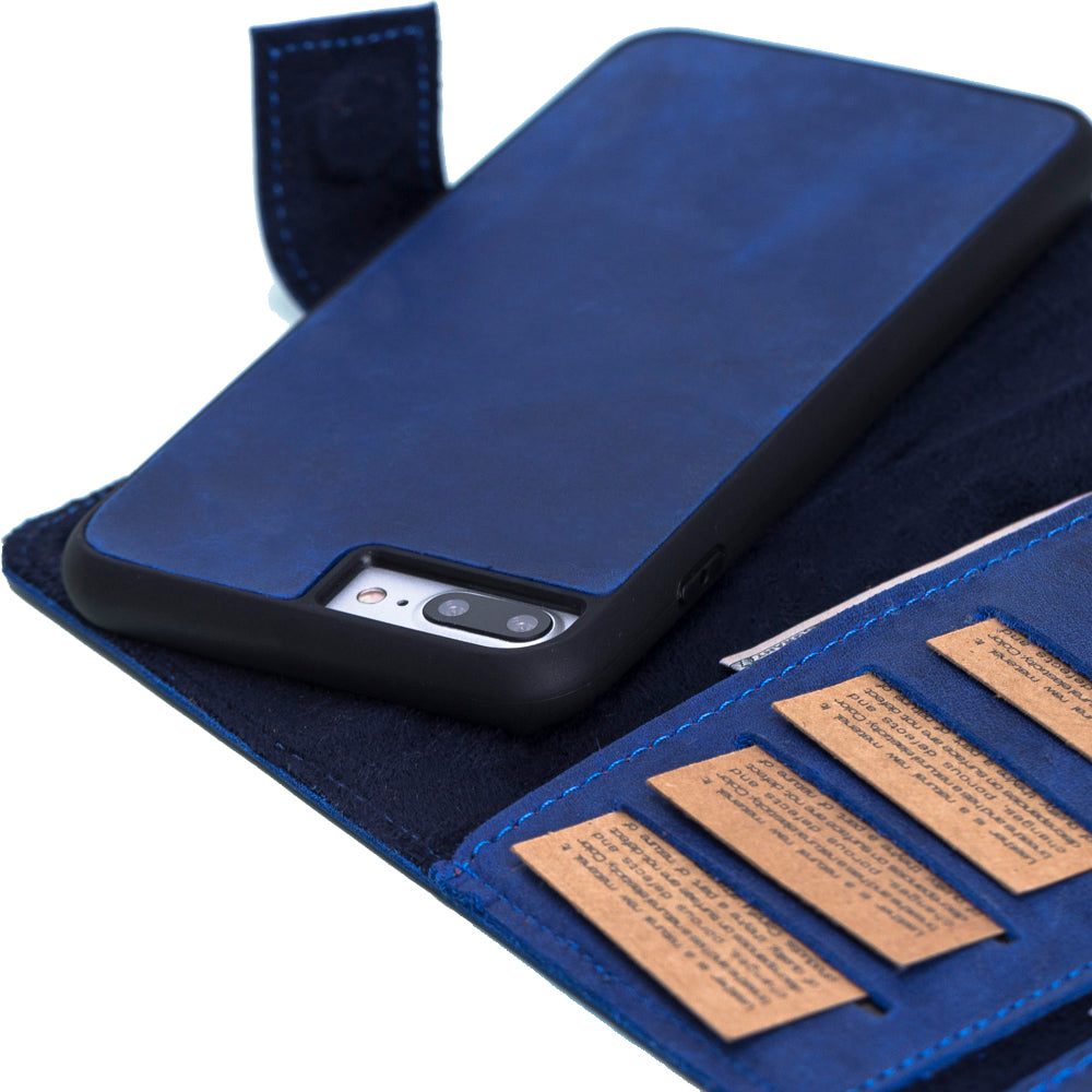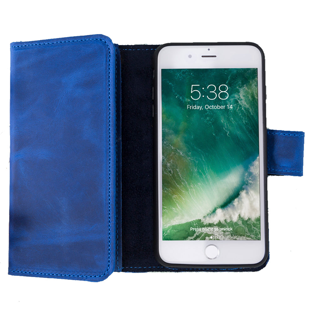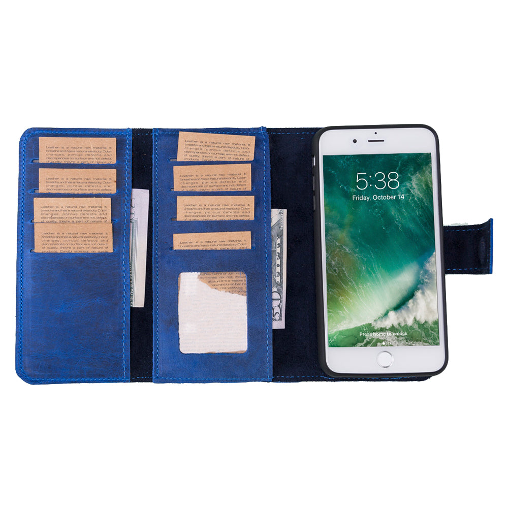 Apple iPhone 7-8-SE Uyumlu Deri Cüzdanlı Kılıf Santa Mavi