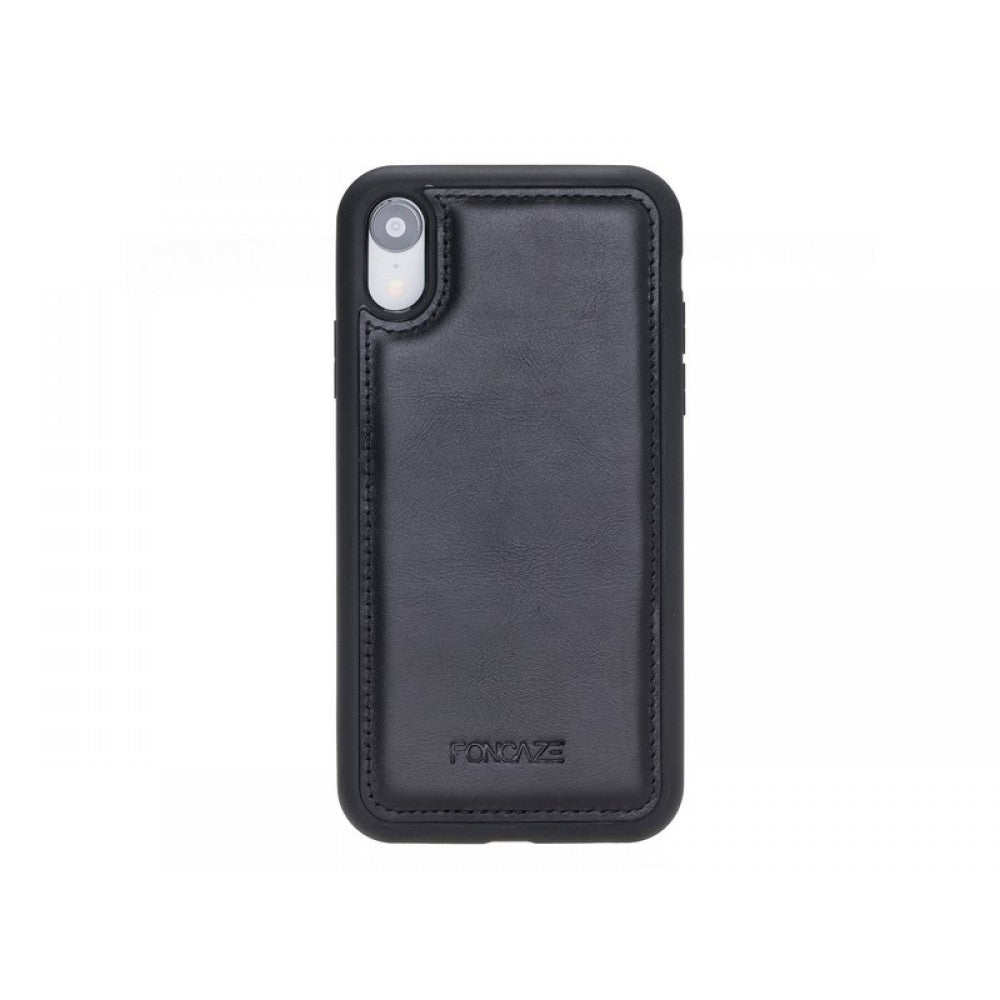 Apple iPhone XR Uyumlu Deri Arka Kapak Foncaze RST1 Siyah